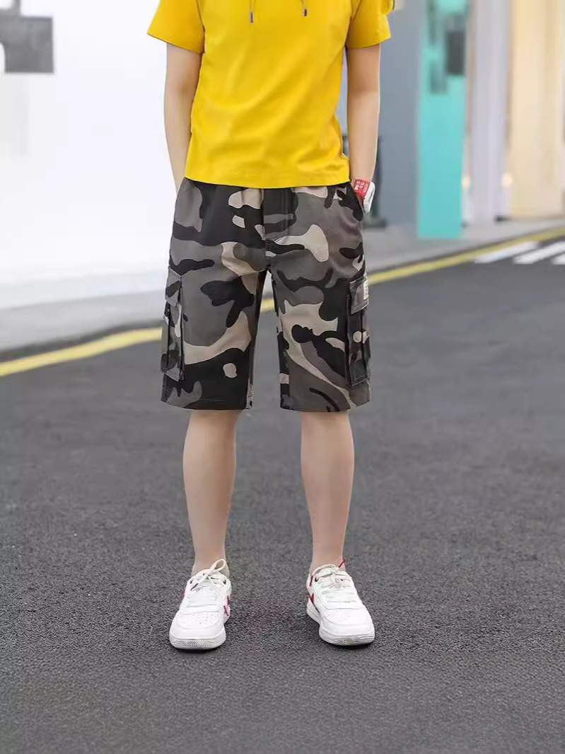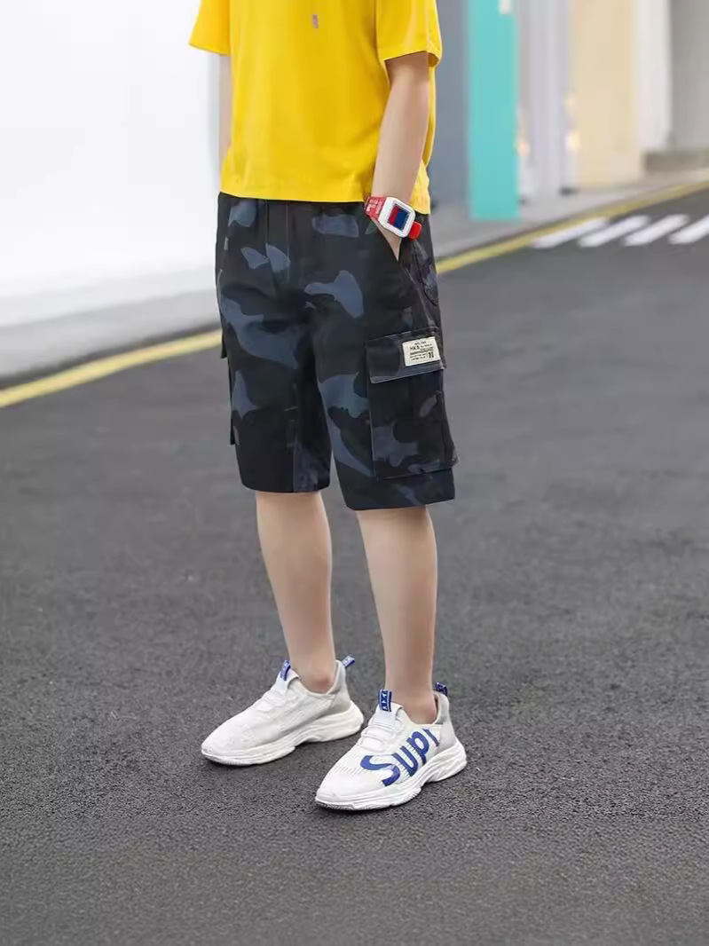 男童夏季迷彩洗水棉休闲短裤童装休闲五分百搭中裤工装沙滩裤