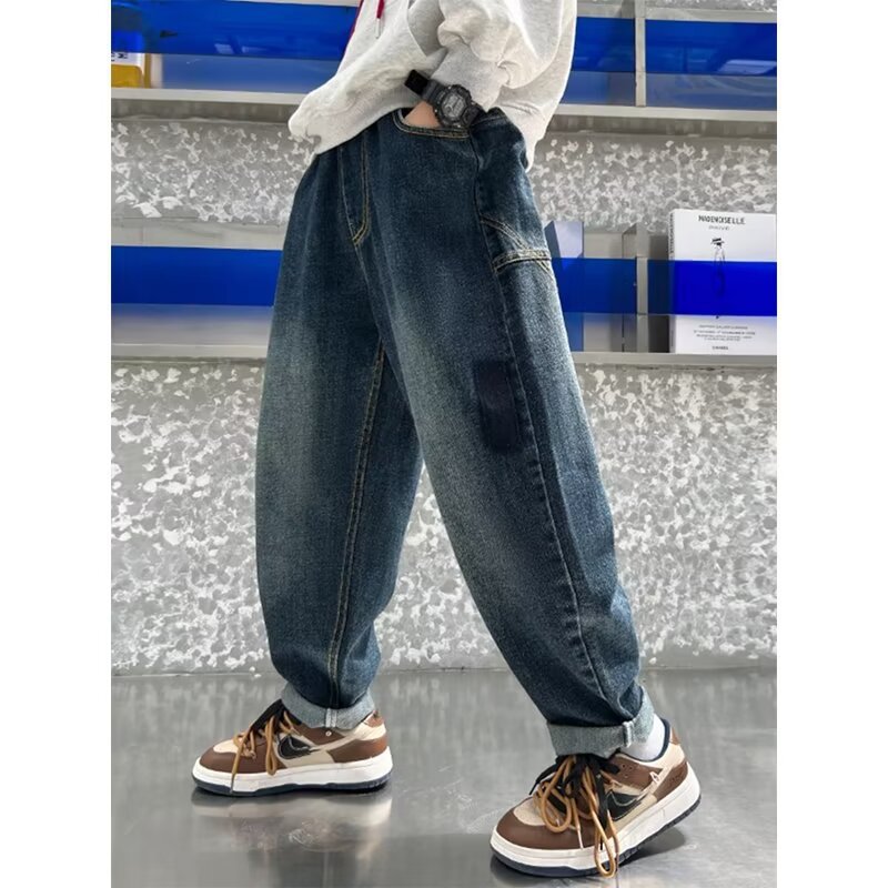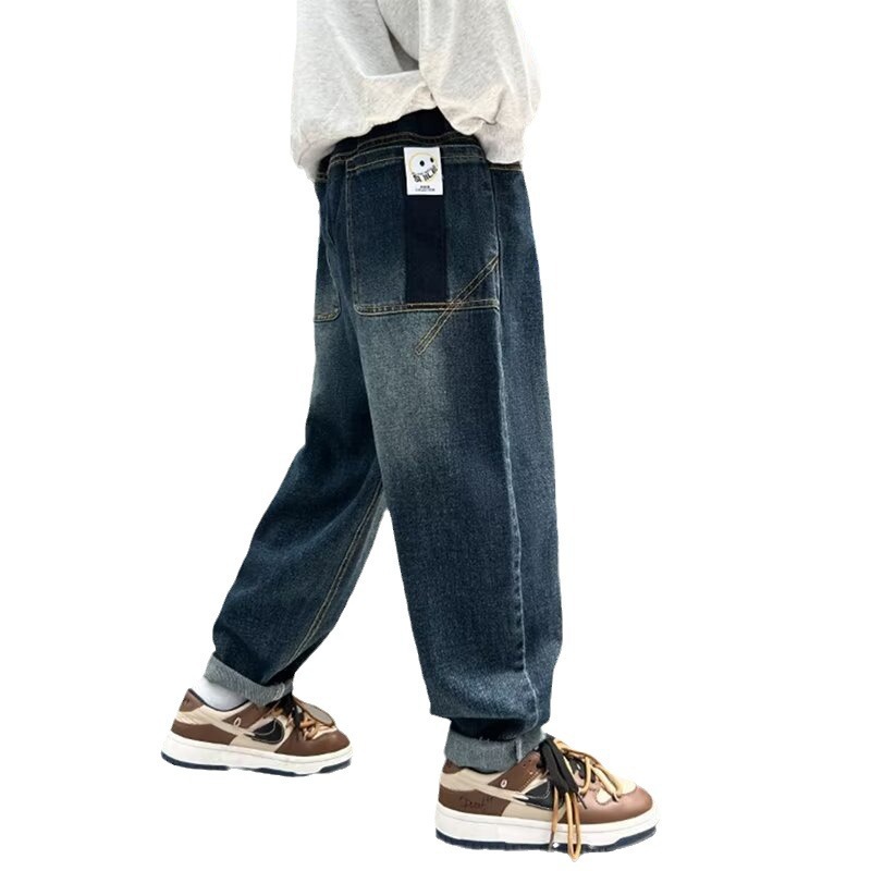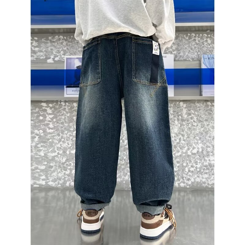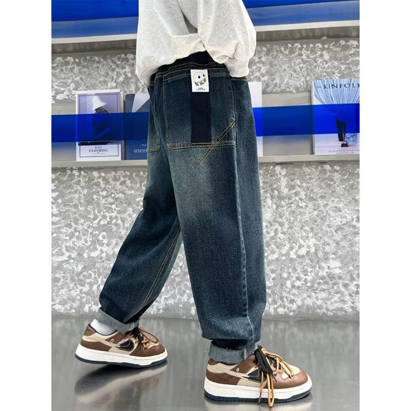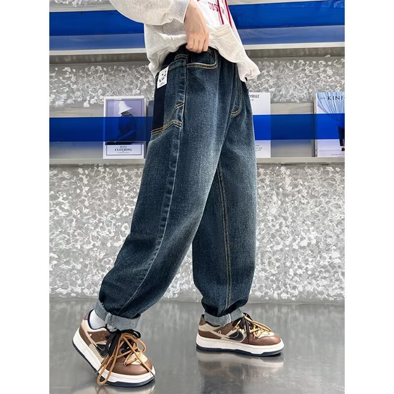 男童裤子春秋款新款儿童洋气牛仔裤时髦炸街中大童复古长裤潮