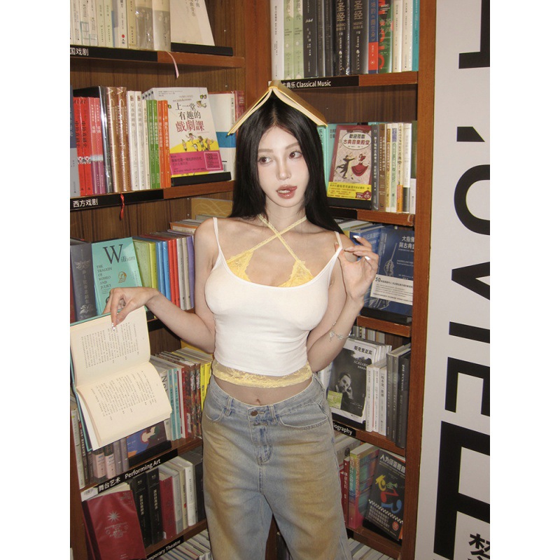 蕾丝吊带背心修身镂空性感辣妹纯欲叠穿短款上衣两件套