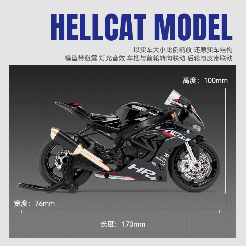 嘉业合金车模1比12宝玛HP4摩托车滑行声光玩具车音效模型摆件