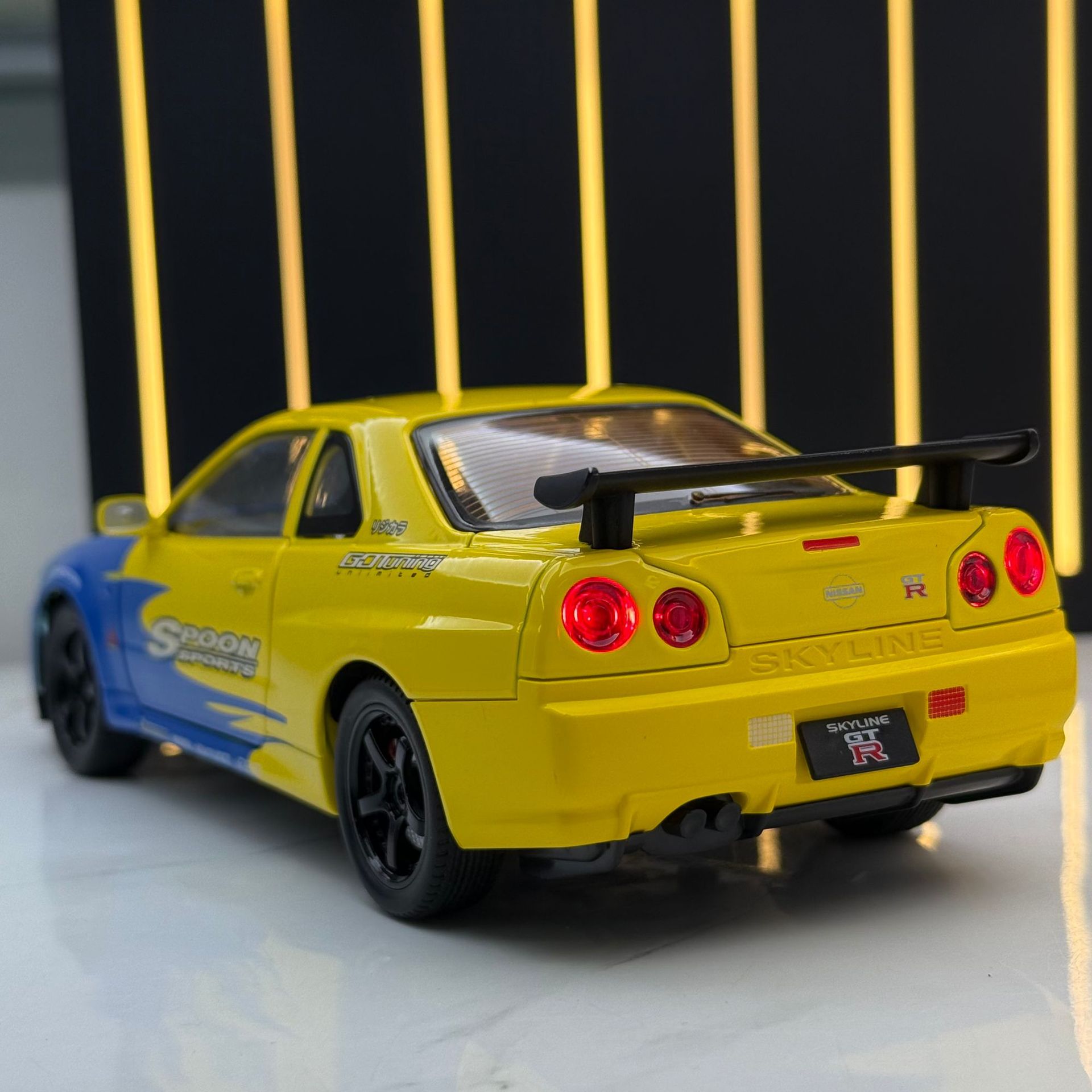 威丽合金车模1比24GTR34天际拉花版声光回力玩具跑车音效模型摆件