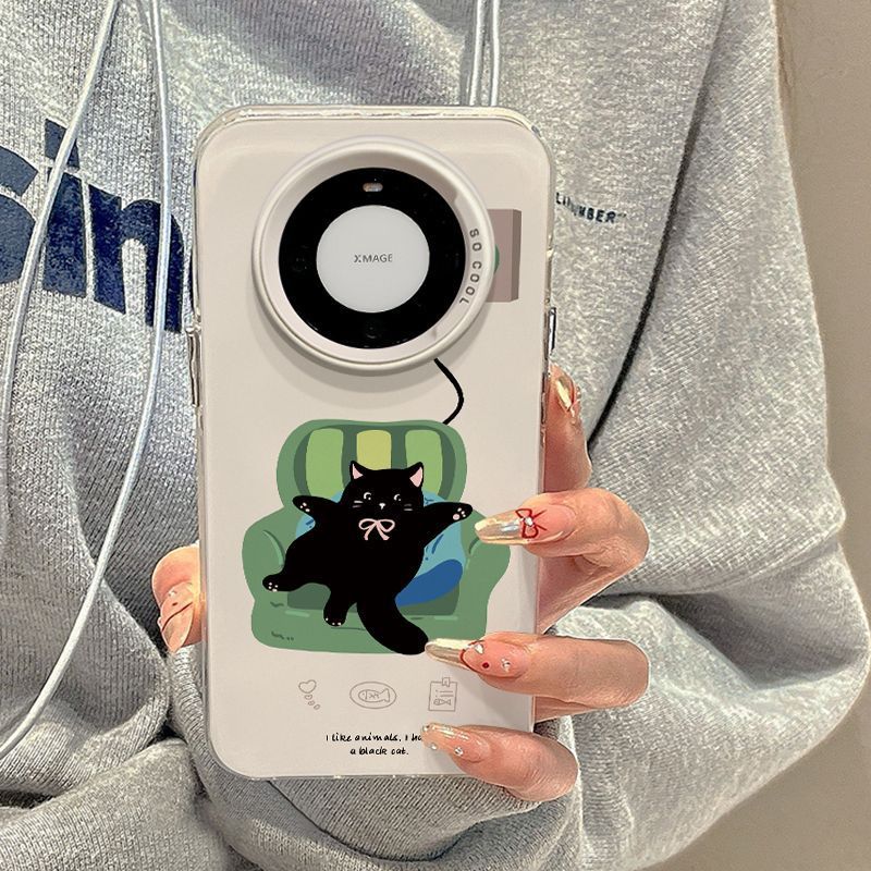 华为mate70pro手机壳卡通可爱HUAWEImate60高端绿沙发上的猫