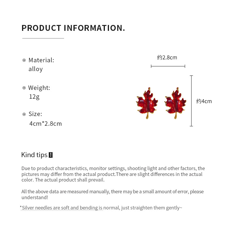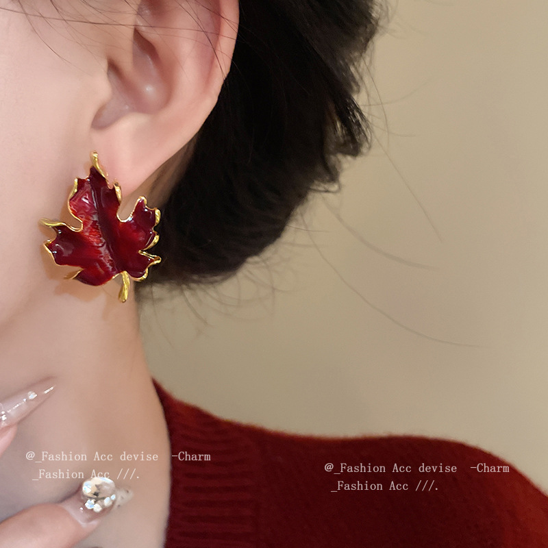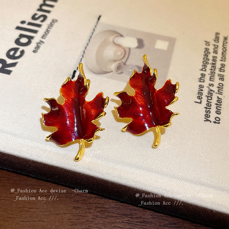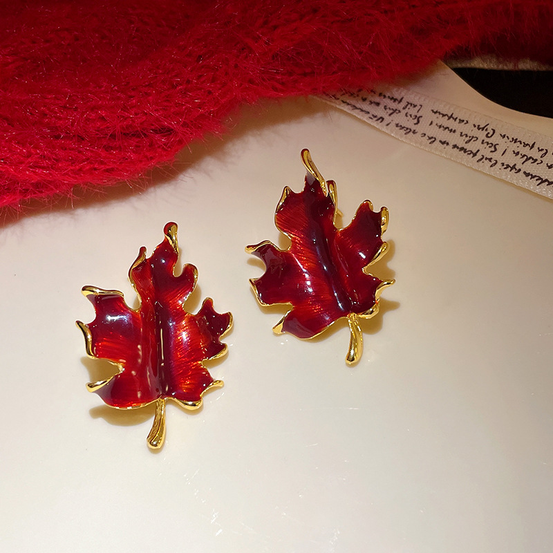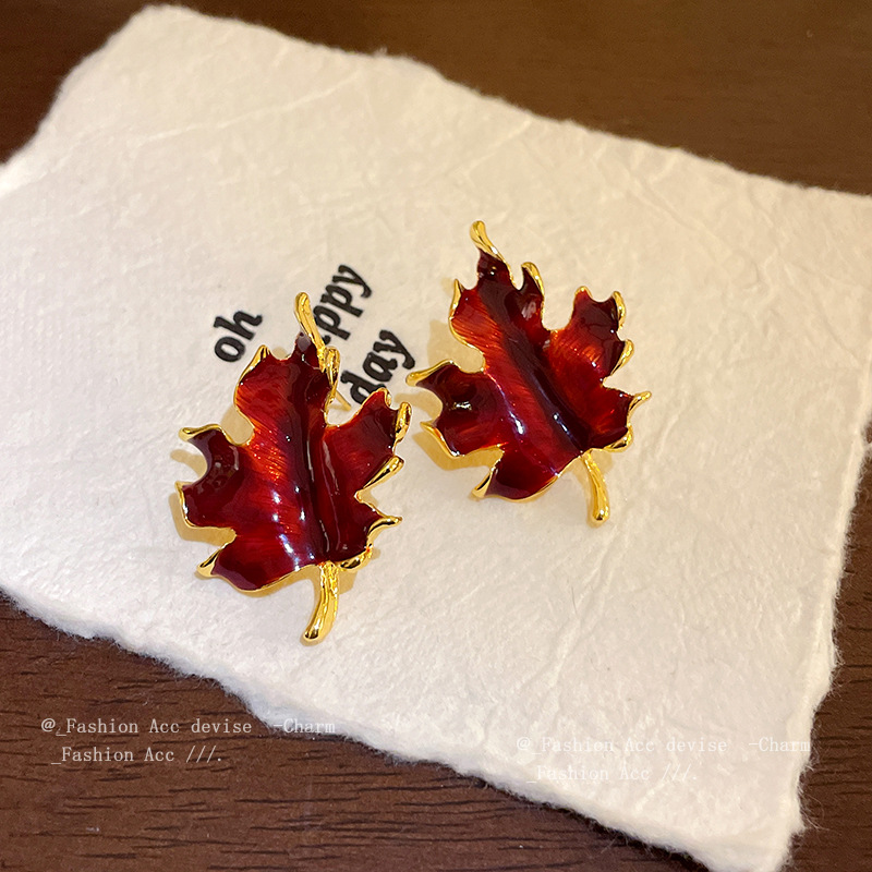 银针滴油枫叶耳钉港风复古设计耳环高级感时尚气质耳饰