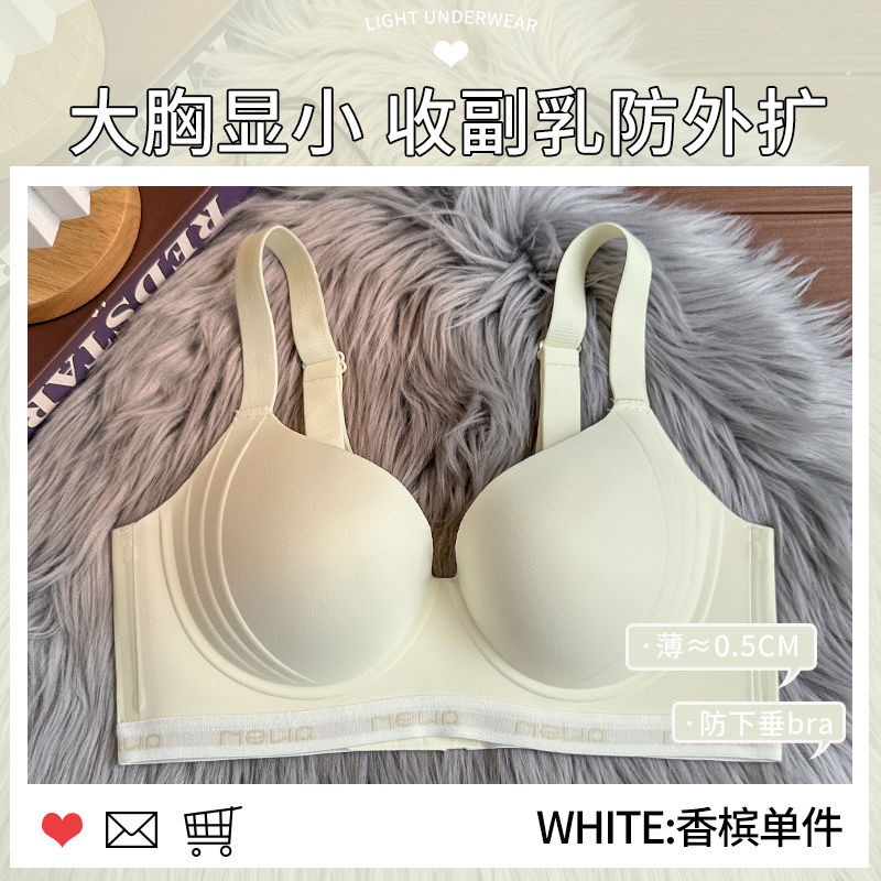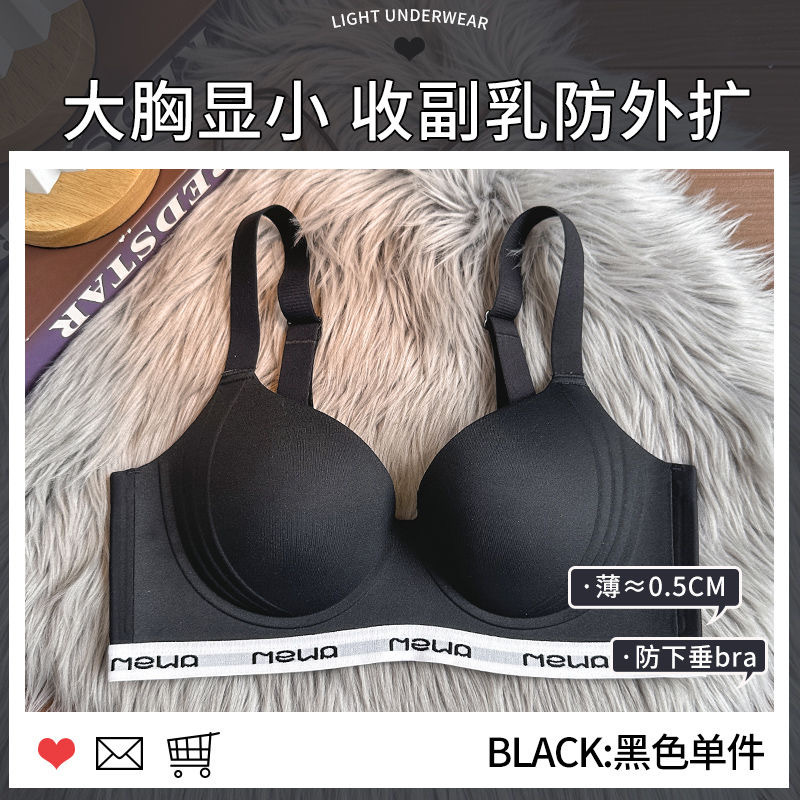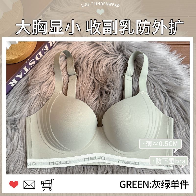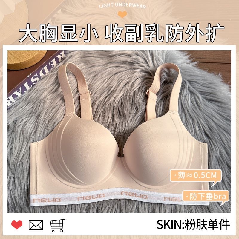 无痕薄款内衣女大胸显小上托防下垂软支撑收副乳运动大码文胸