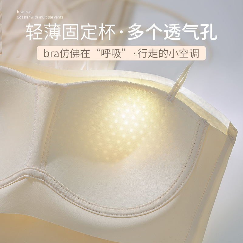 3030芒果固定杯凉感纱交叉美背无痕内衣女夏季薄款裸感无钢圈文胸