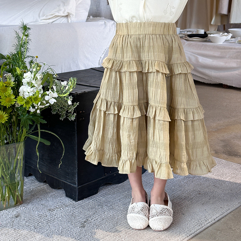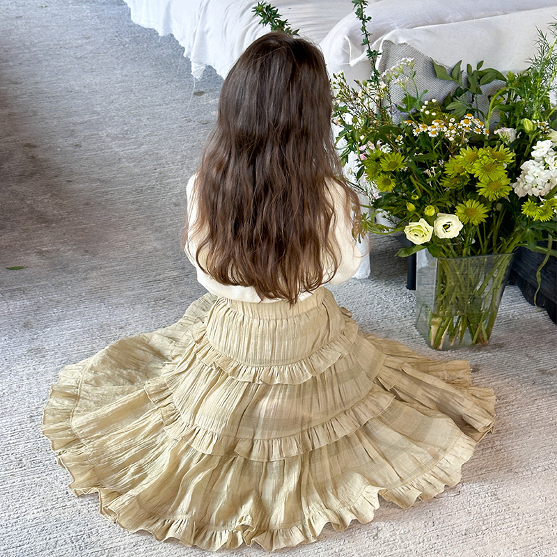 艾摩贝贝童裙子春新款女童甜美层次感蛋糕裙儿童中长款半身裙