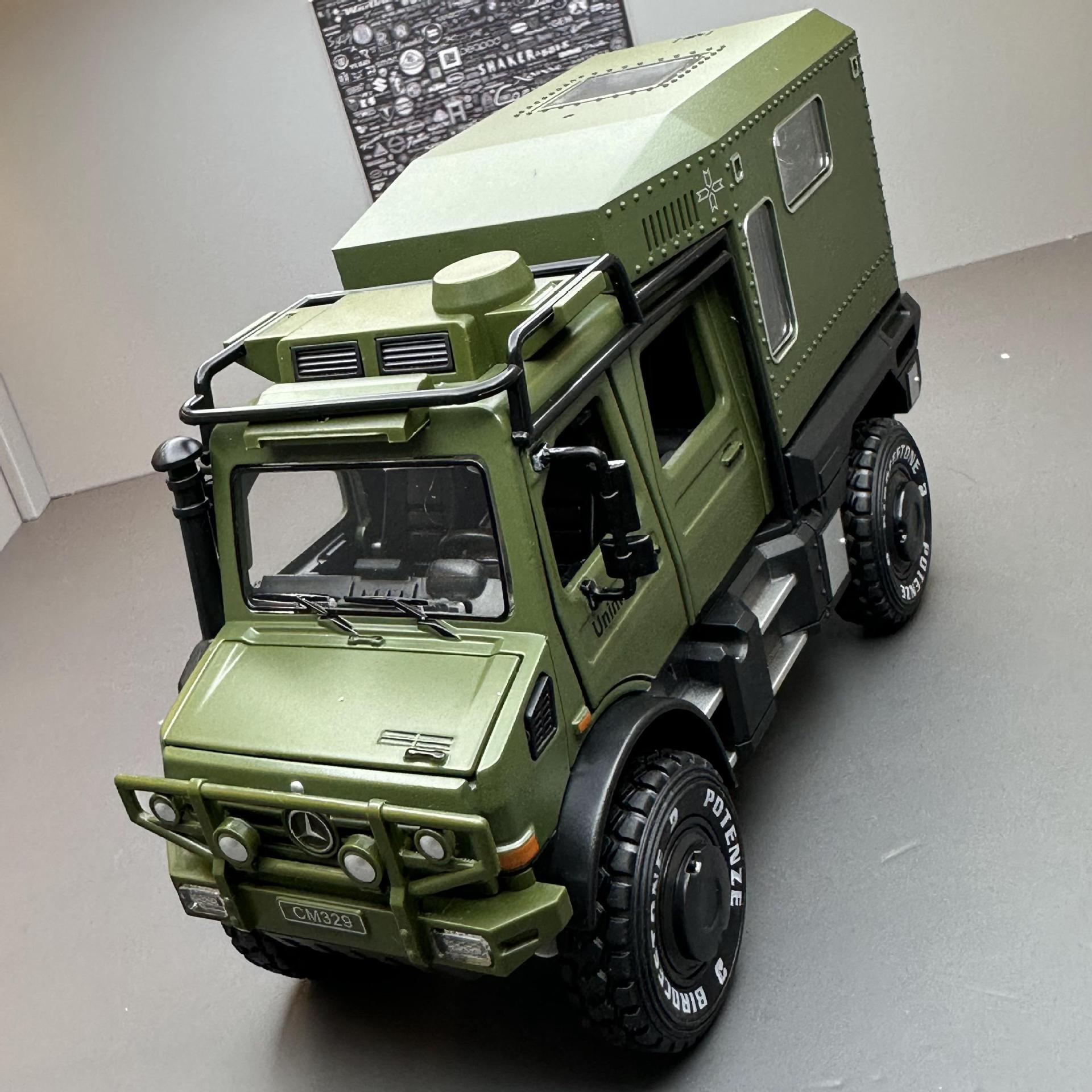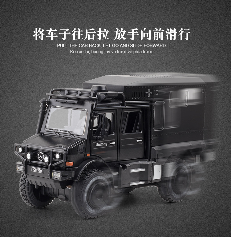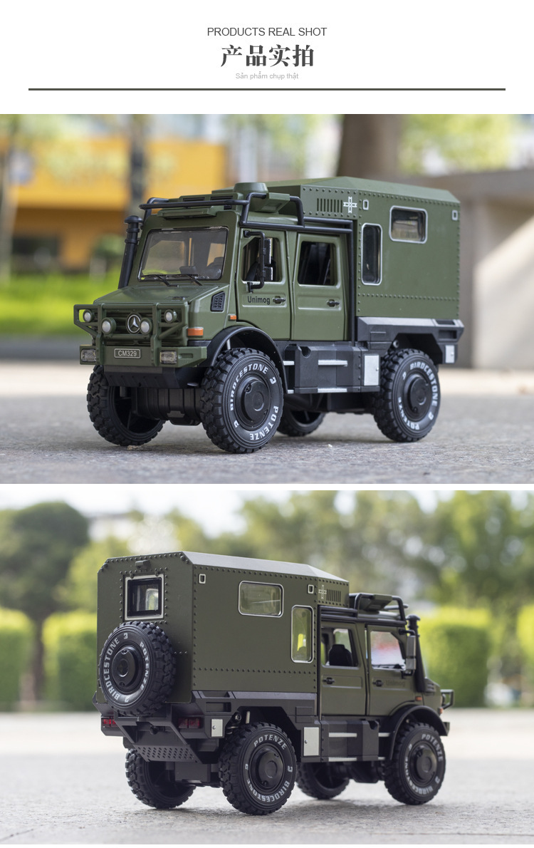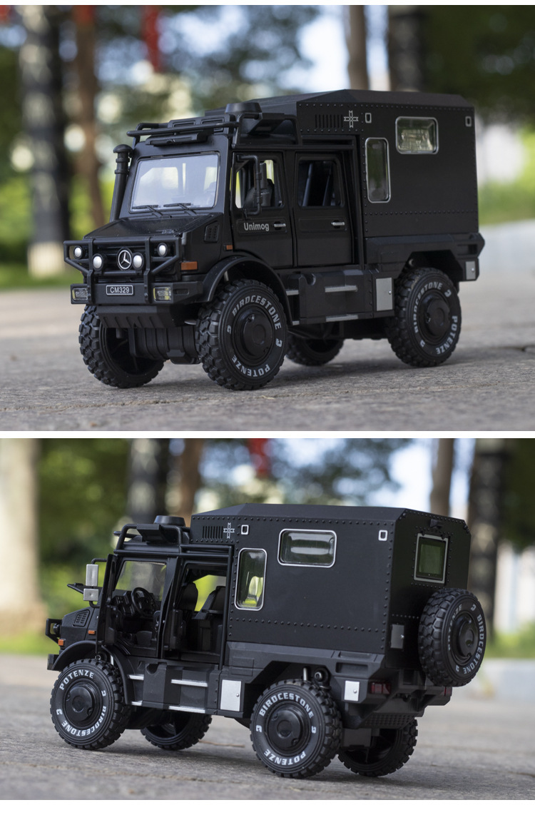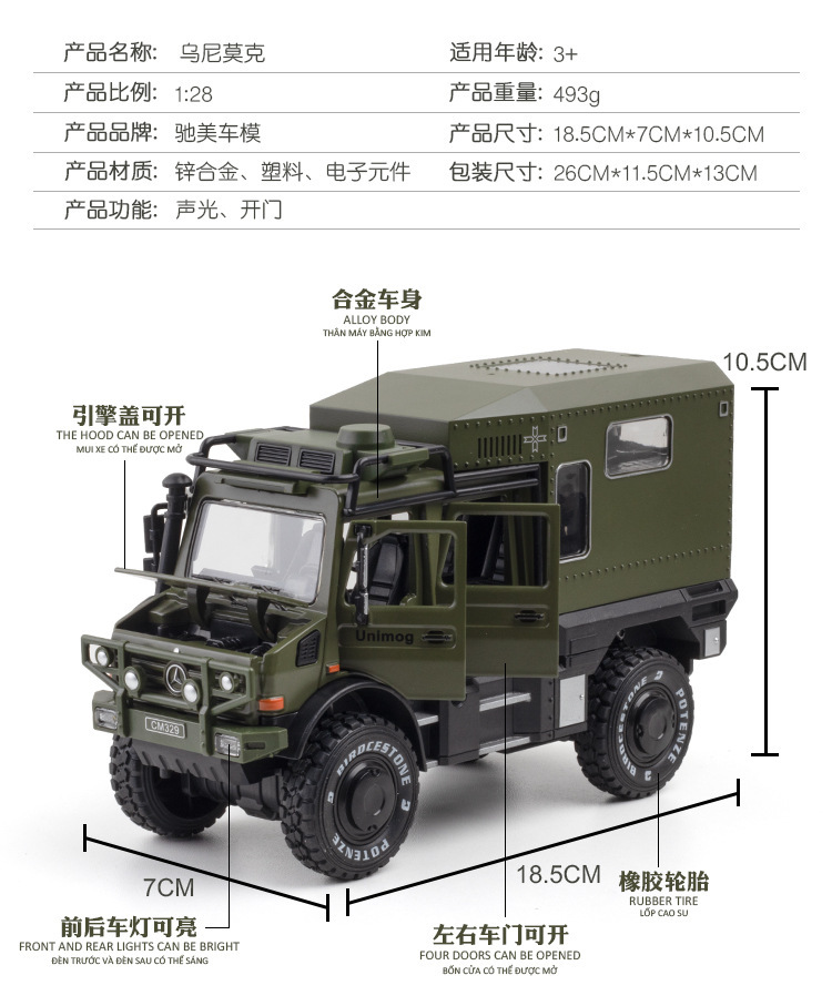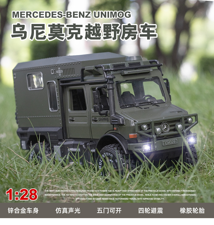 驰美合金1:28车模大驰乌尼莫克越野车回力玩具车声光模型摆件品藏
