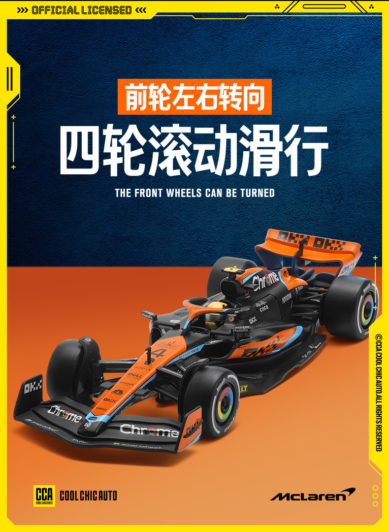 彩珀合金车模1:24迈凯伦cLarenF1赛车滑行玩具车无带声光模型摆件