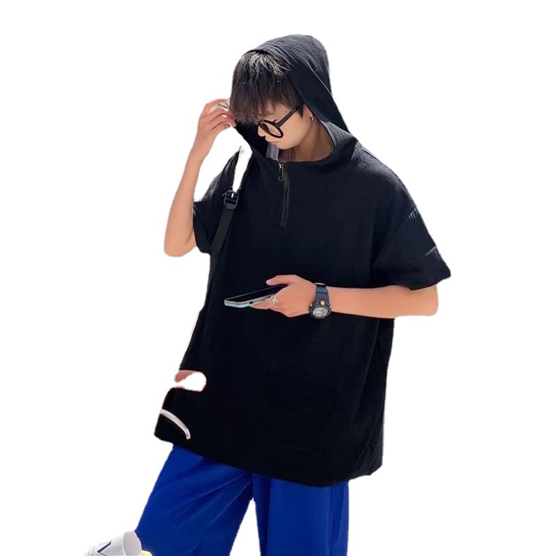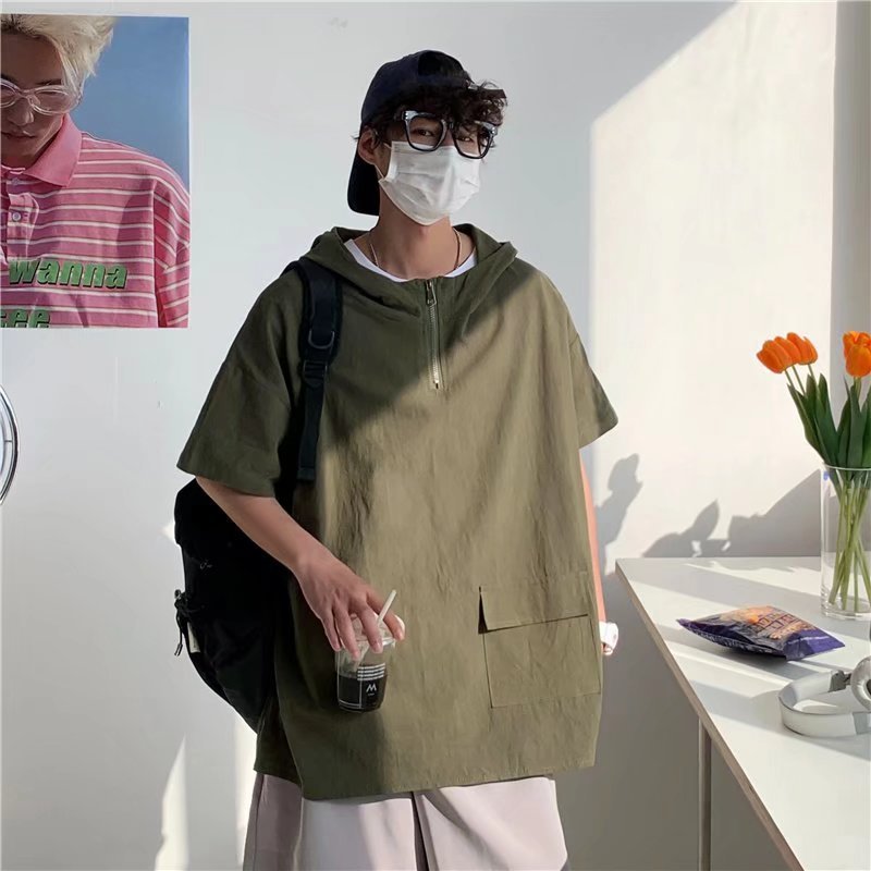 短袖T恤男士夏季港风新款宽松纯色Polo领上衣潮流休闲帅气体恤衫t