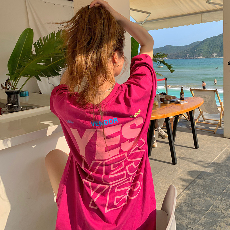 宽松显瘦圆领正肩纯棉短袖T恤欧美潮流女装美式个性街头情侣衫夏