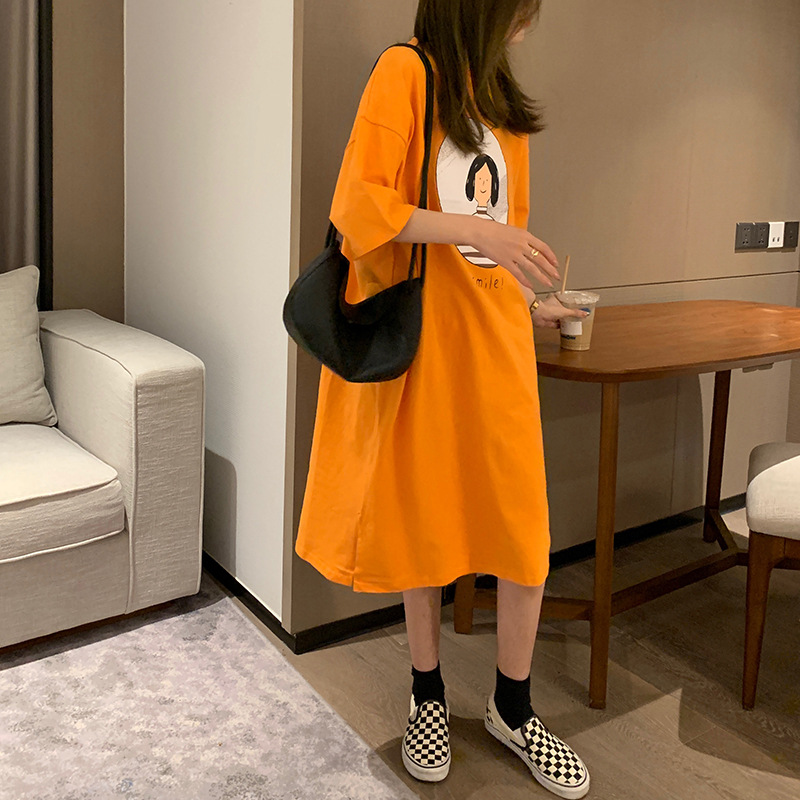 胖MM180斤孕妇T恤裙夏趣味人像印花宽松oversize长款连衣裙女