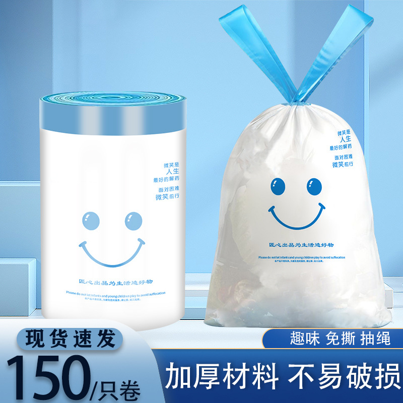 家用抽绳大卷垃圾袋手提式加大加厚带拎手一次性PE塑料袋不易破