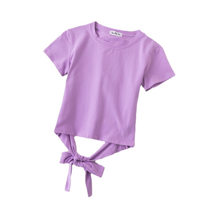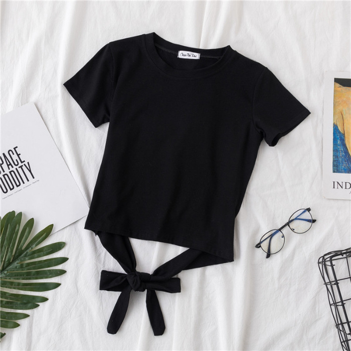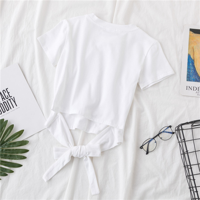 短款t恤短袖女夏韩版后背绑带修身露脐少女多巴胺上衣时尚潮流ins