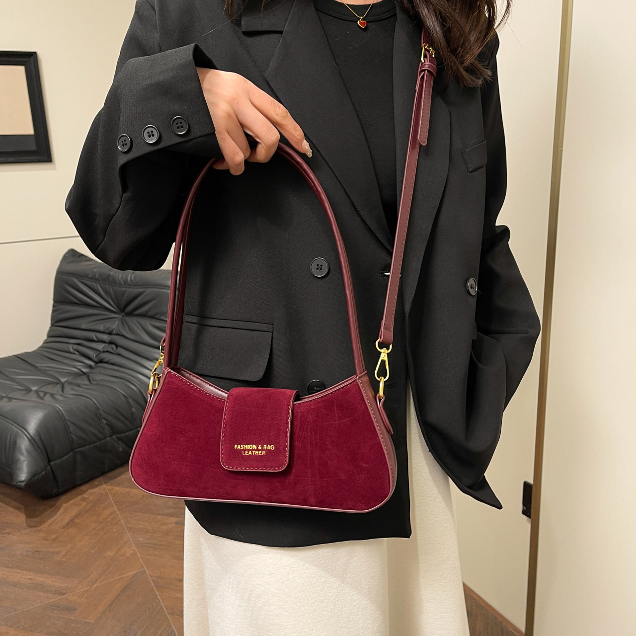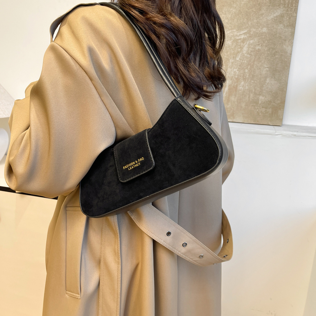 单肩包复古绒面休闲欧美质感腋下包简约百搭小众设计通勤包包