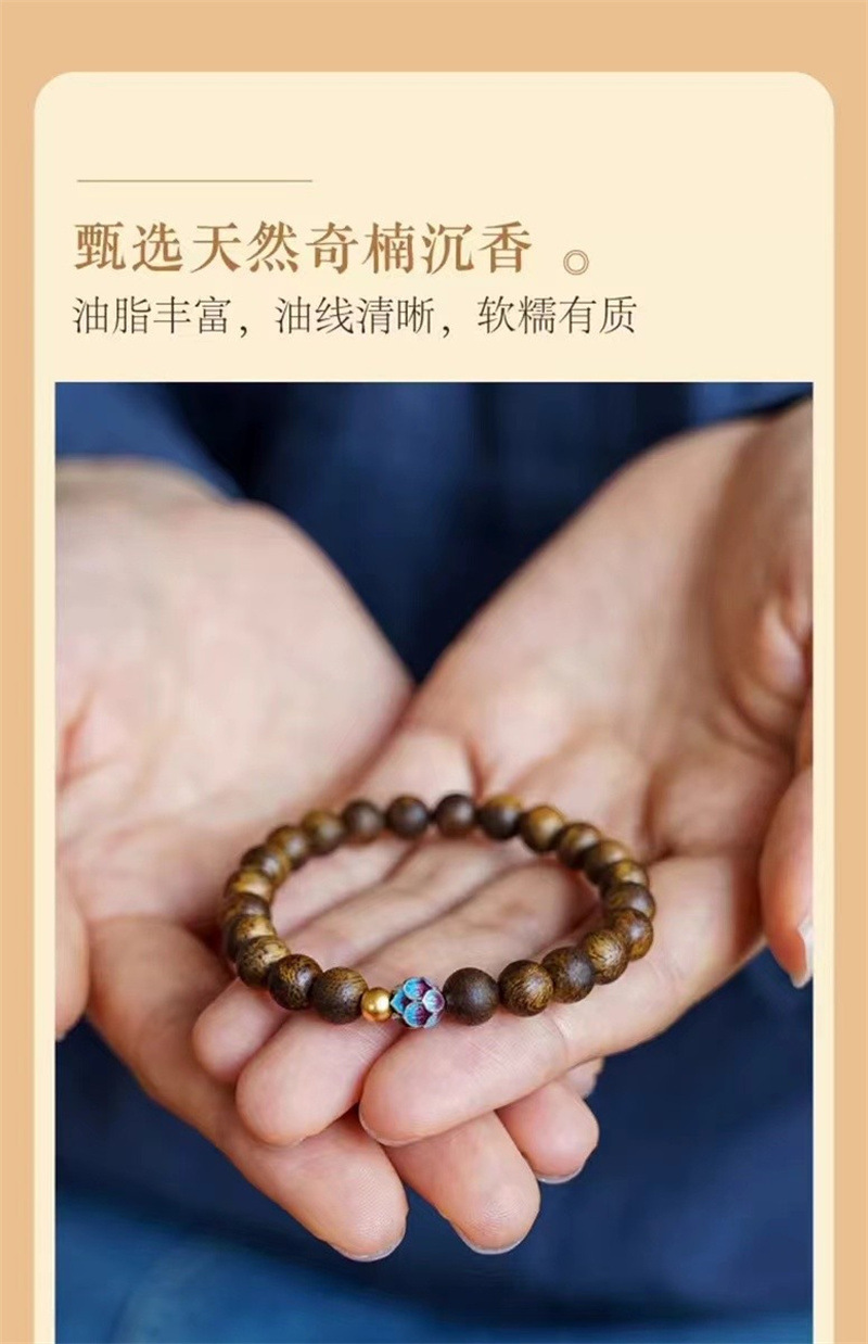 沉香手串女高端木质串珠手链佛珠念珠文玩沉香木莲花