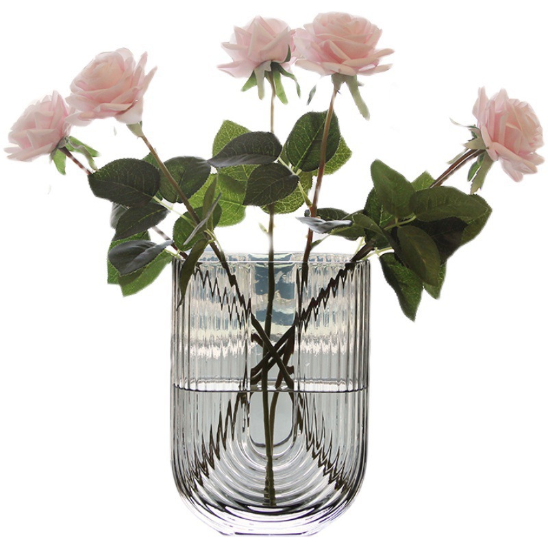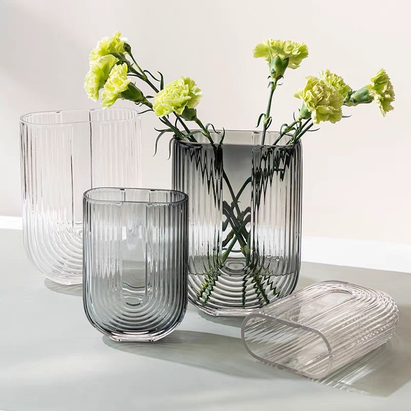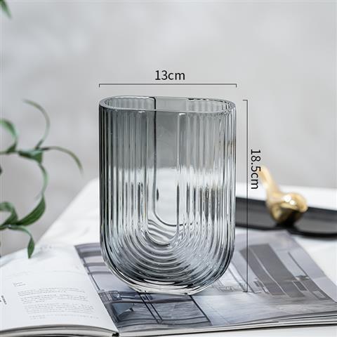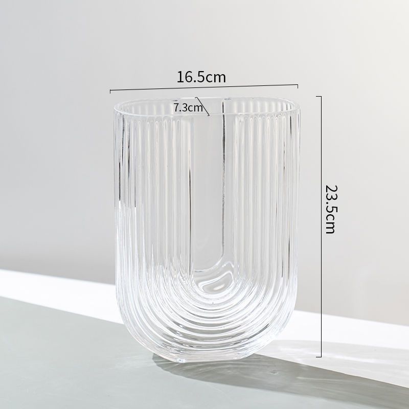透明U型扁口玻璃花瓶现代简约水培插花器客厅卧室家居ins装饰摆件