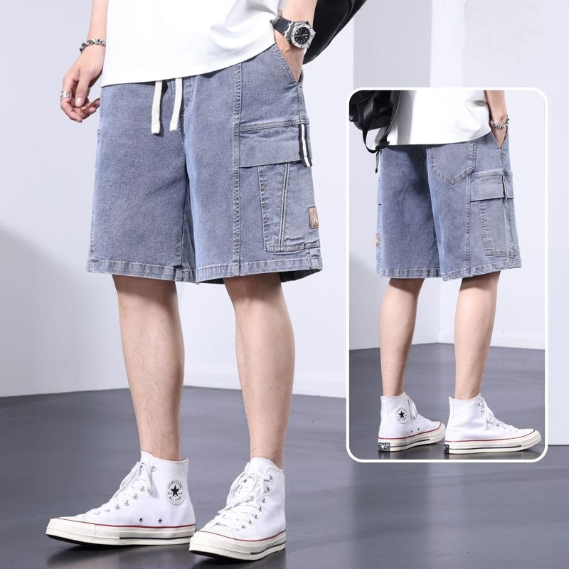 牛仔短裤男夏季潮流大码直筒休闲裤复古宽松冰感裤子