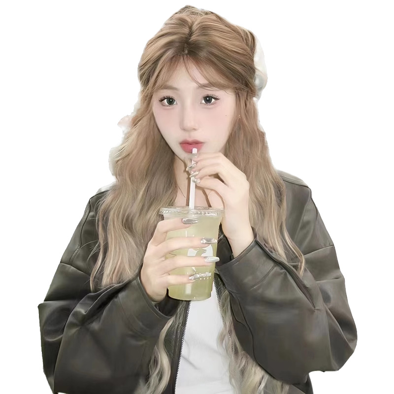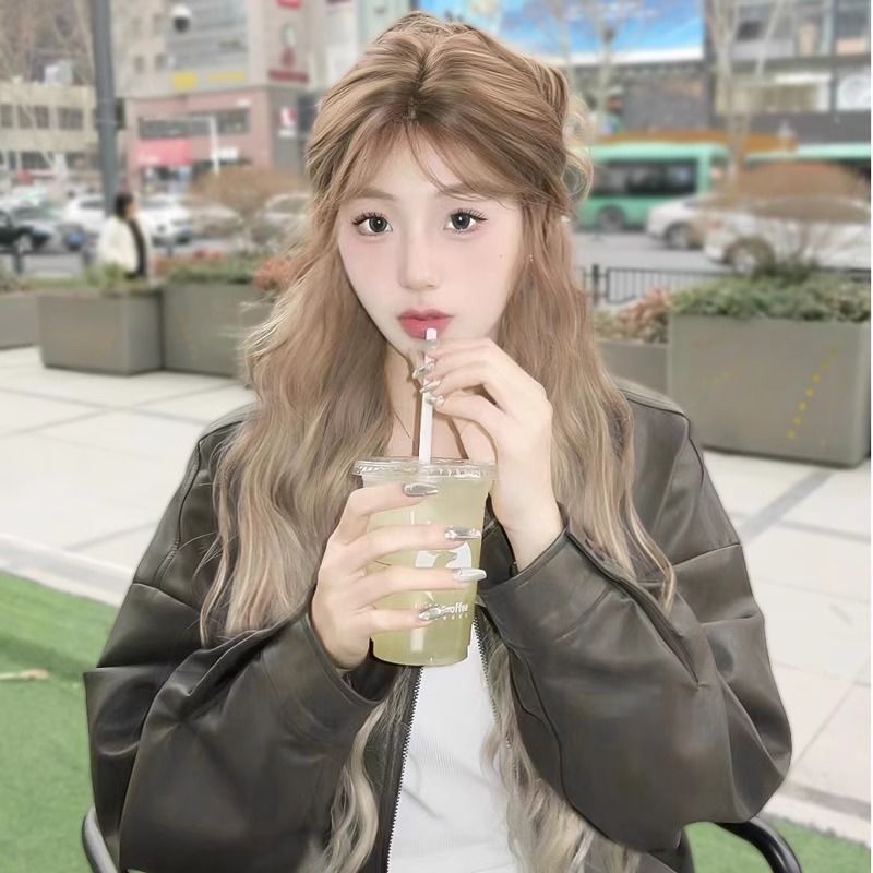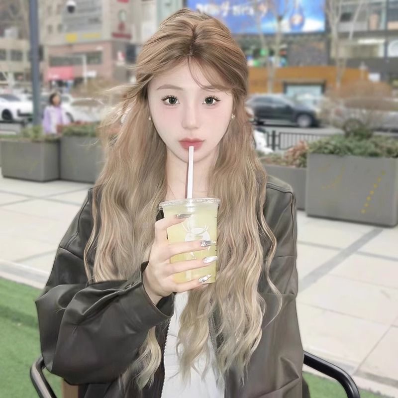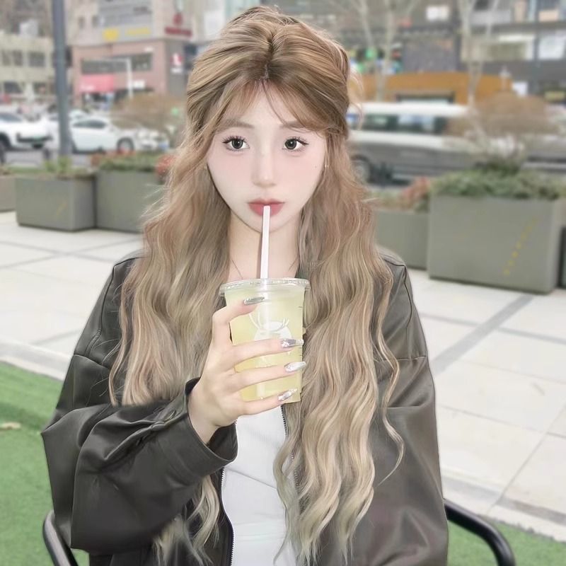 前额蕾丝假发女长发亚裔中分渐变长卷发万用全头套式