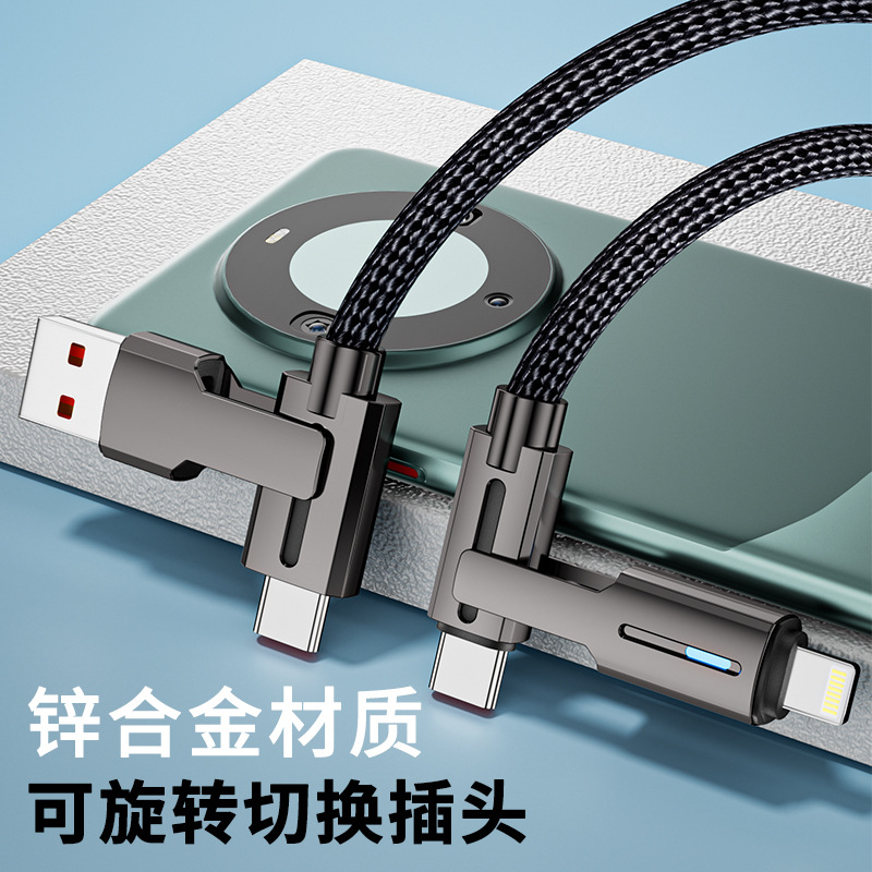 100W四合一快充数据线适用华为苹果小米双typec数据线多功能车载