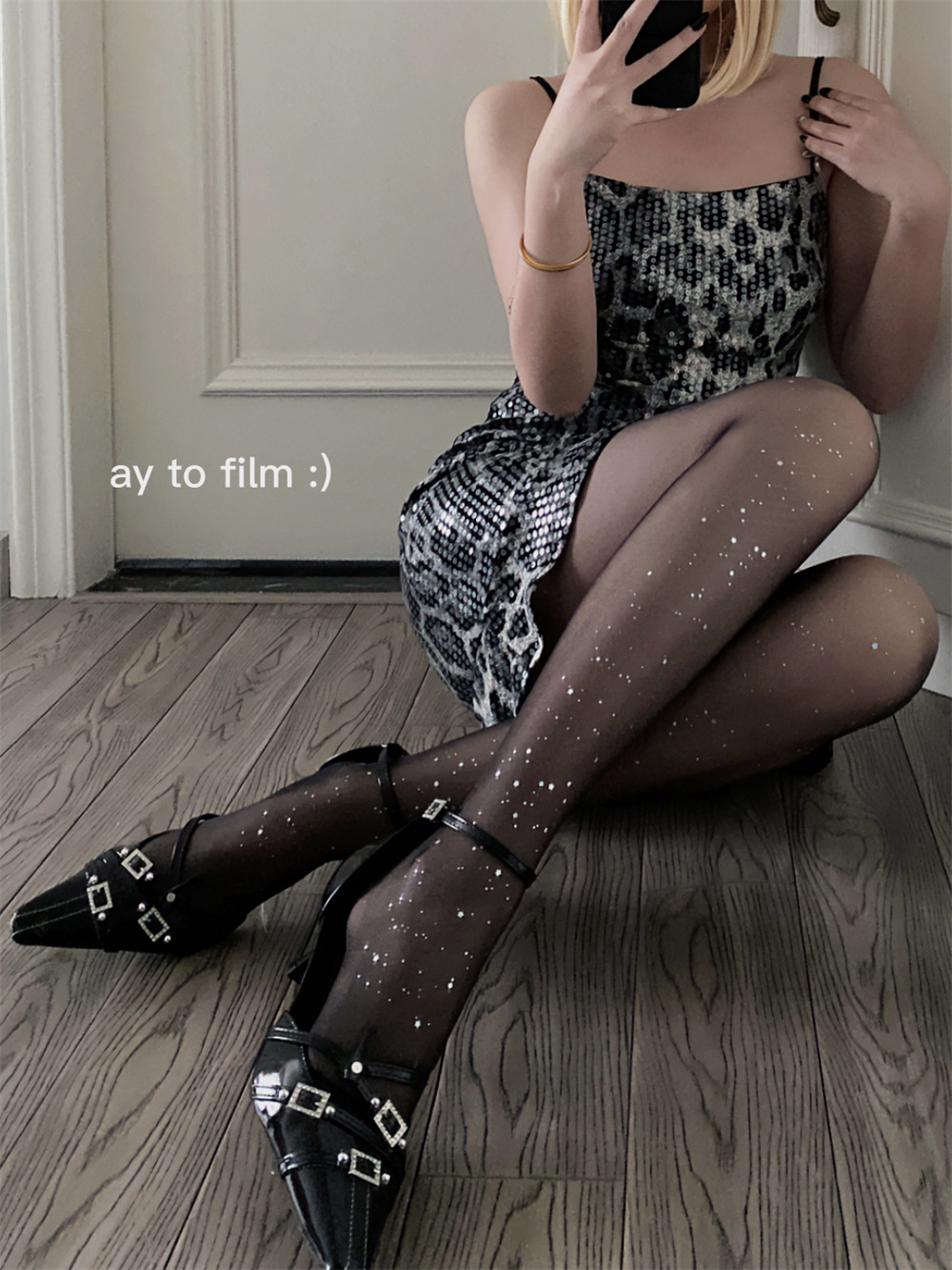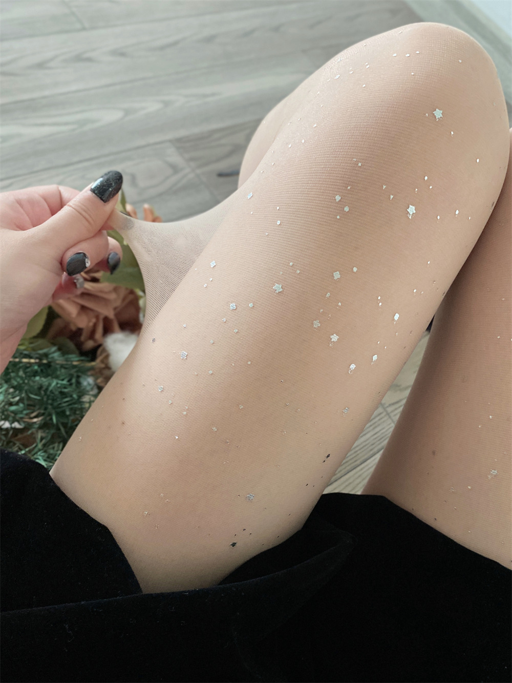 五角星闪片珠光闪闪超薄丝袜璀璨银河白色纯欲光腿神器女神打底裤