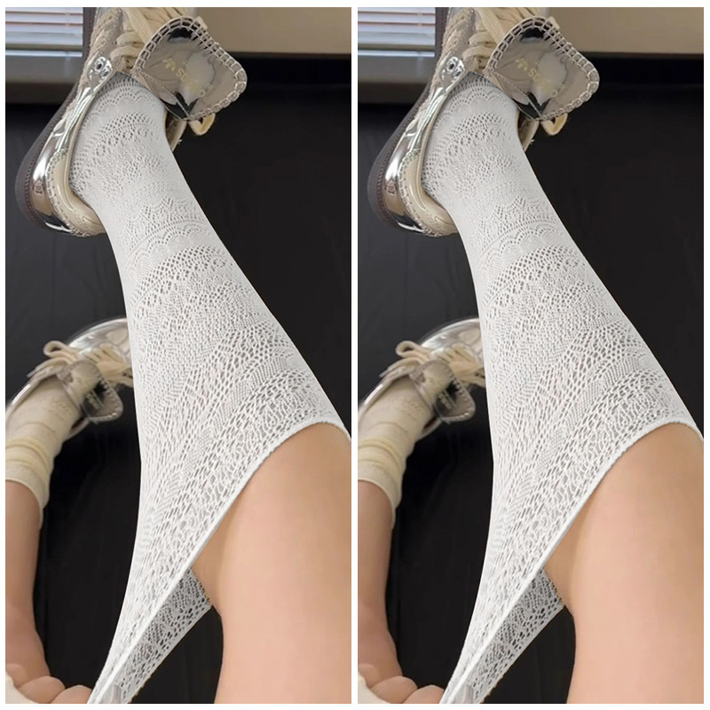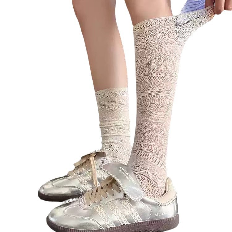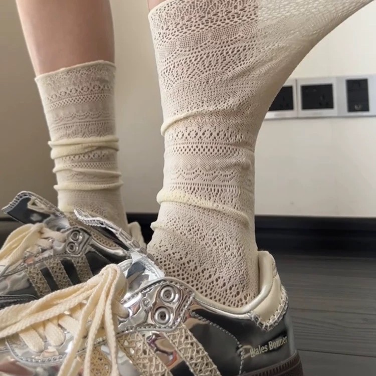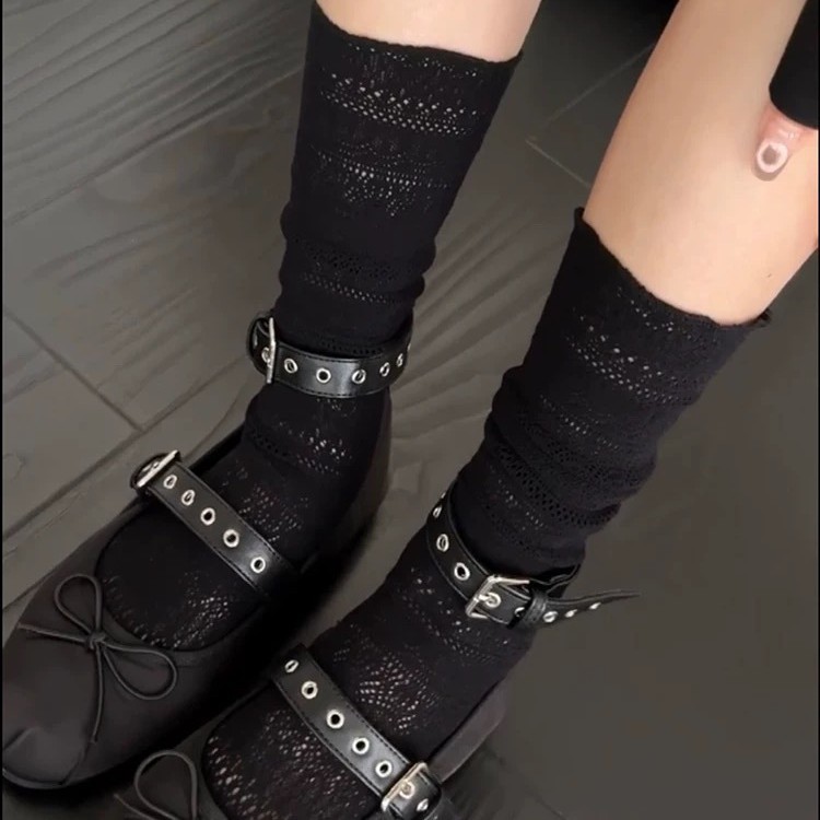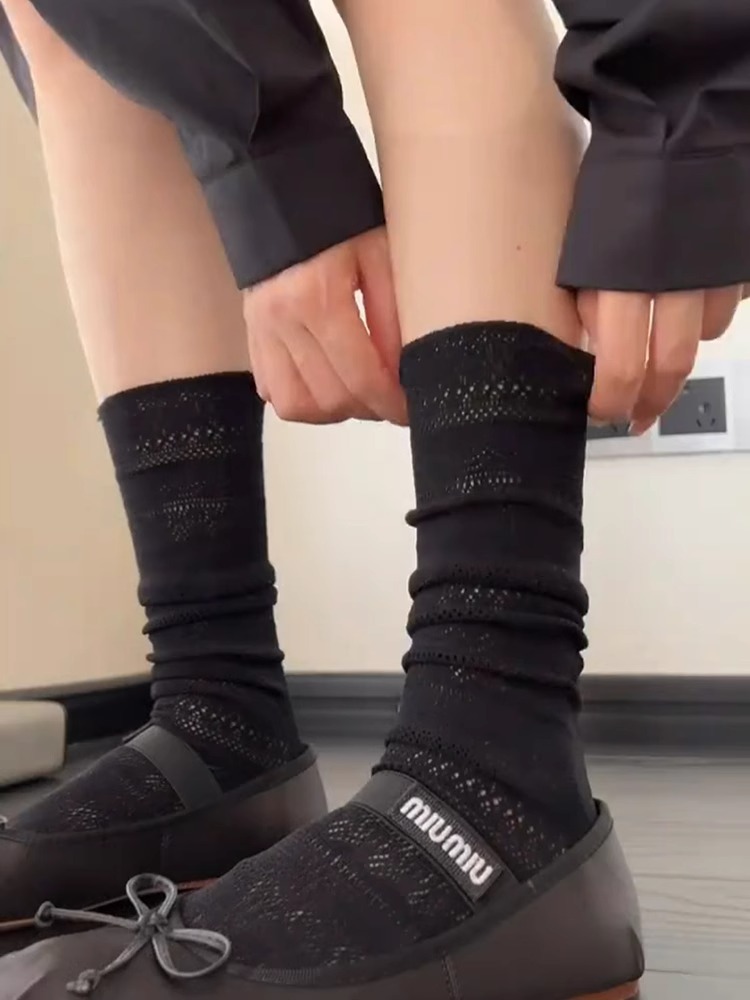 芭蕾风灰色镂空堆堆袜蕾丝小腿显腿瘦袜子小众复古风休闲中筒袜