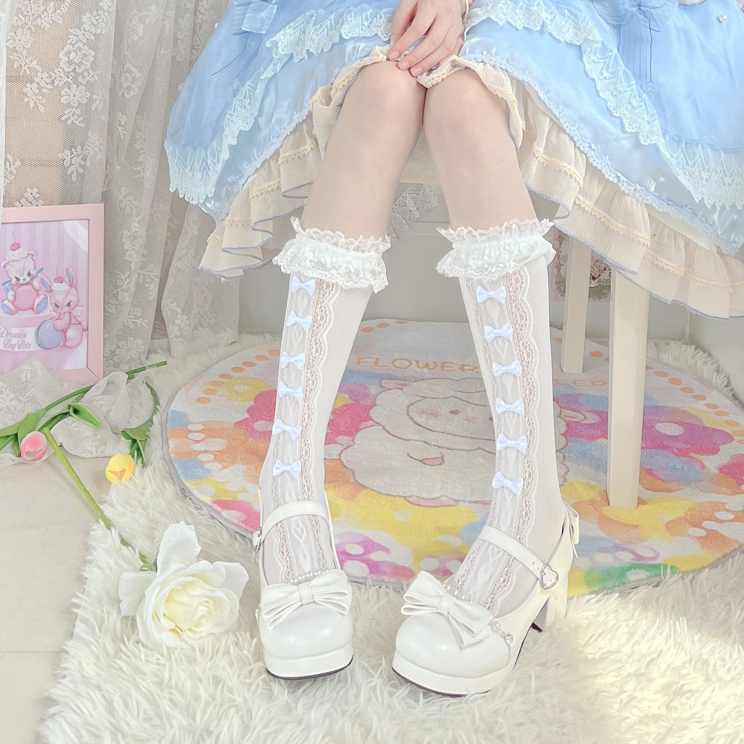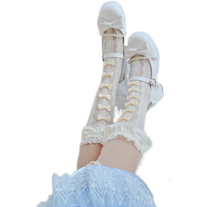 夏季洛丽塔蕾丝袜中筒短花边袜女可爱日系jk萝莉仙女蝴蝶结小腿袜