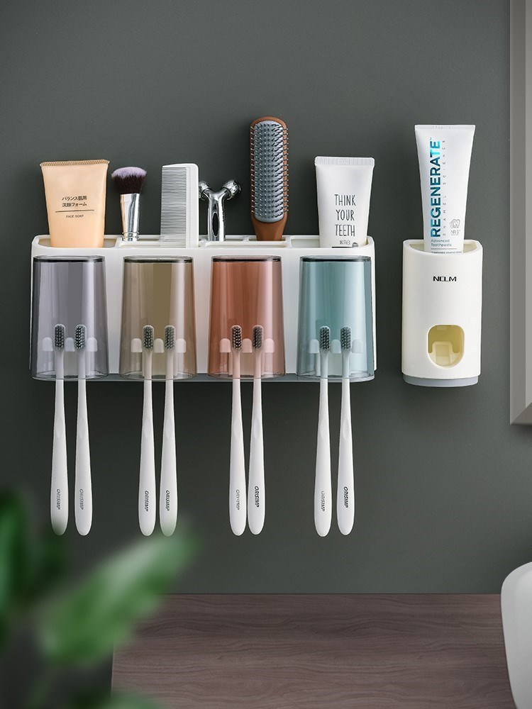 四口款牙刷架+挤牙膏器