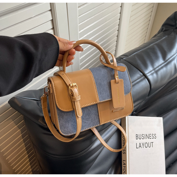 高级感小众包包女新款夏季百搭斜挎包女士撞色拼接手提小方包