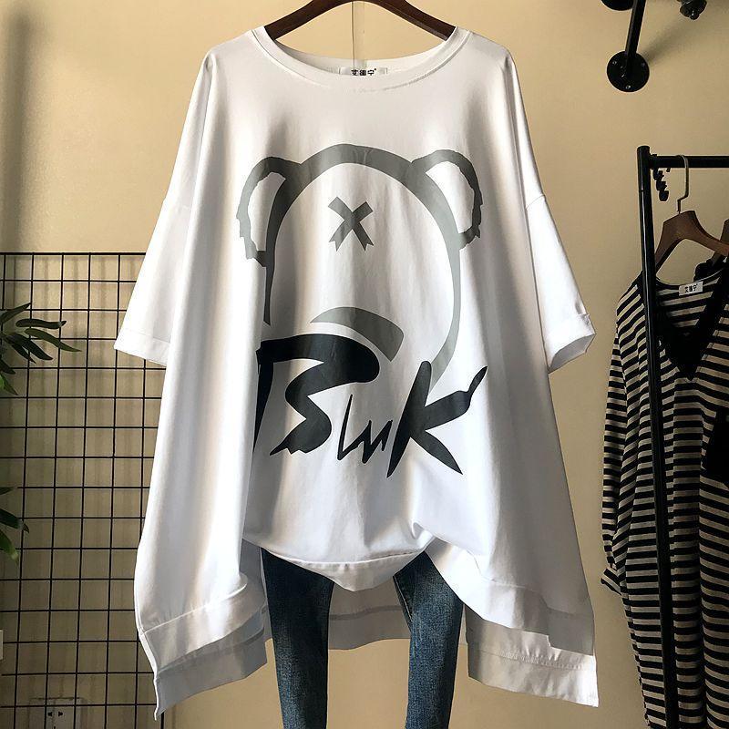 日系做旧复古风中长款短袖T恤女夏季宽松慵懒风胖MM大码上衣