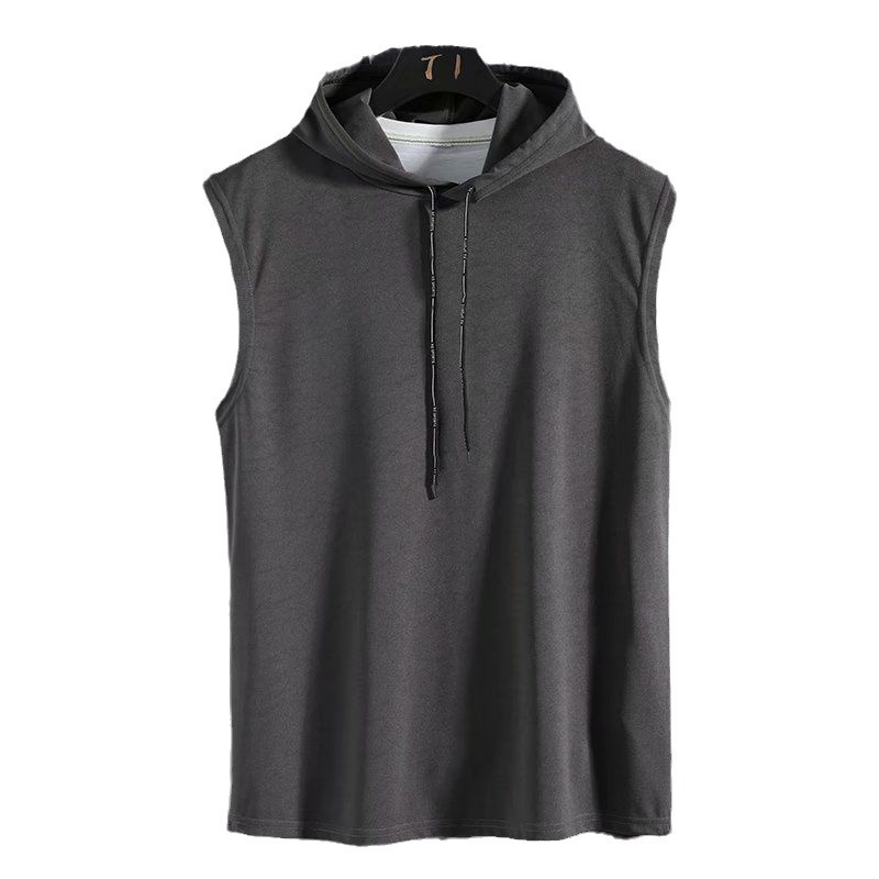 背心男夏季薄款潮牌外穿运动坎肩简约潮流青少年纯色连帽无袖t恤