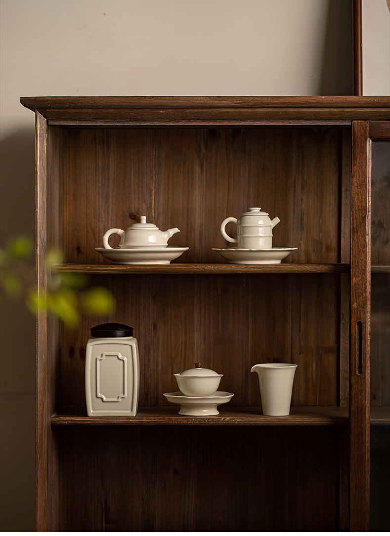 定窑薄胎盖碗工夫茶具泡茶碗手工陶瓷复古简约茶碗壶承茶点盘果盘