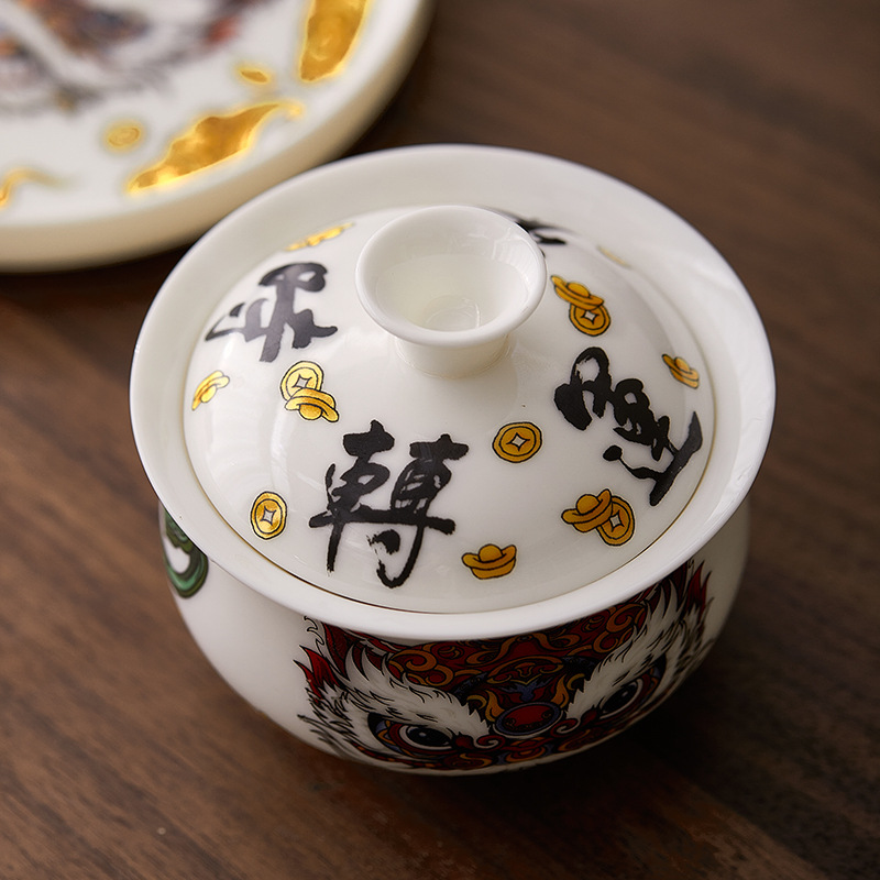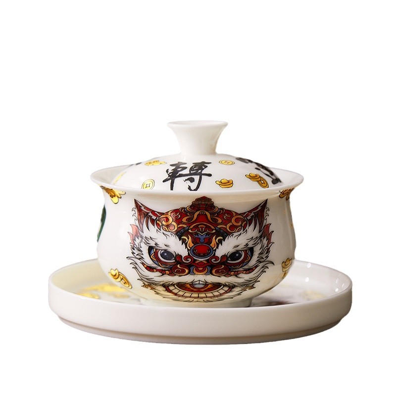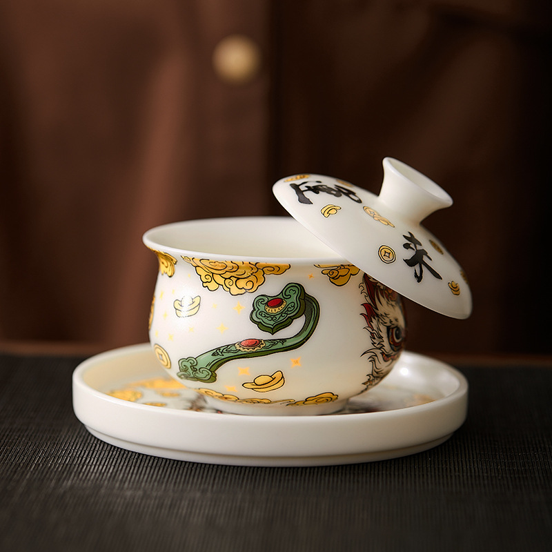 悬停三才盖碗不烫手茶杯泡茶碗壶承茶具中国风汝窑羊脂玉