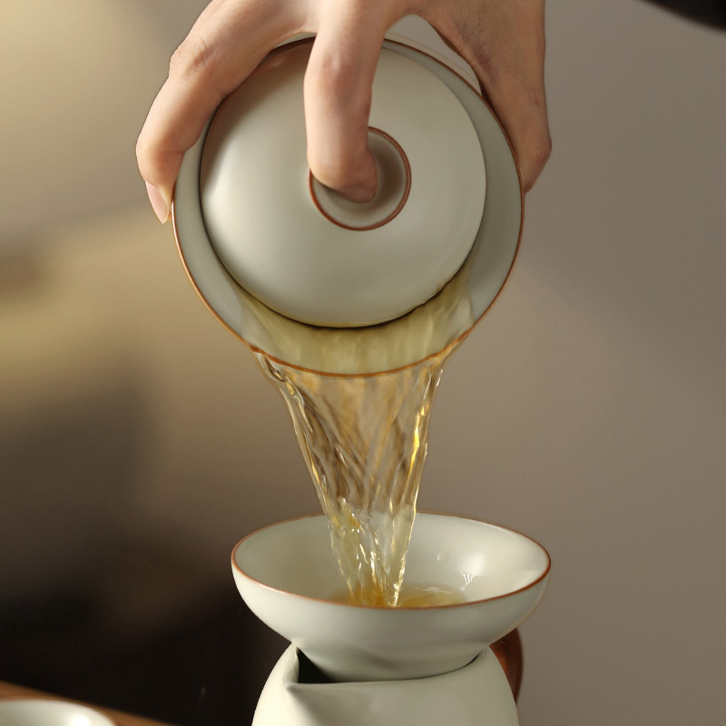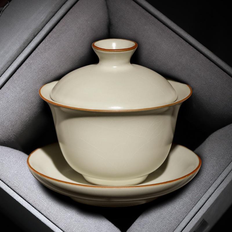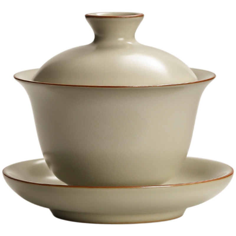 米黄汝窑三才盖碗泡茶茶具公道杯三件套茶杯防烫带盖单个套装