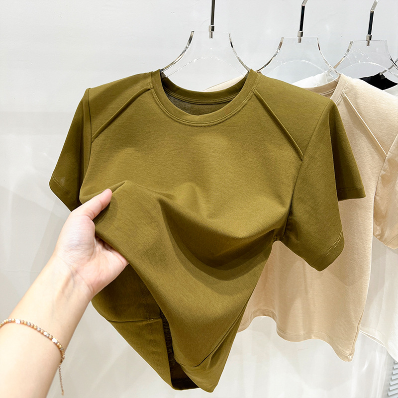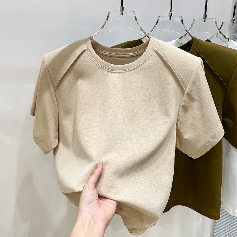 正肩短袖t恤女夏季女装新款垫肩设计感鱼骨别致宽松上衣女潮