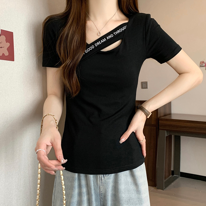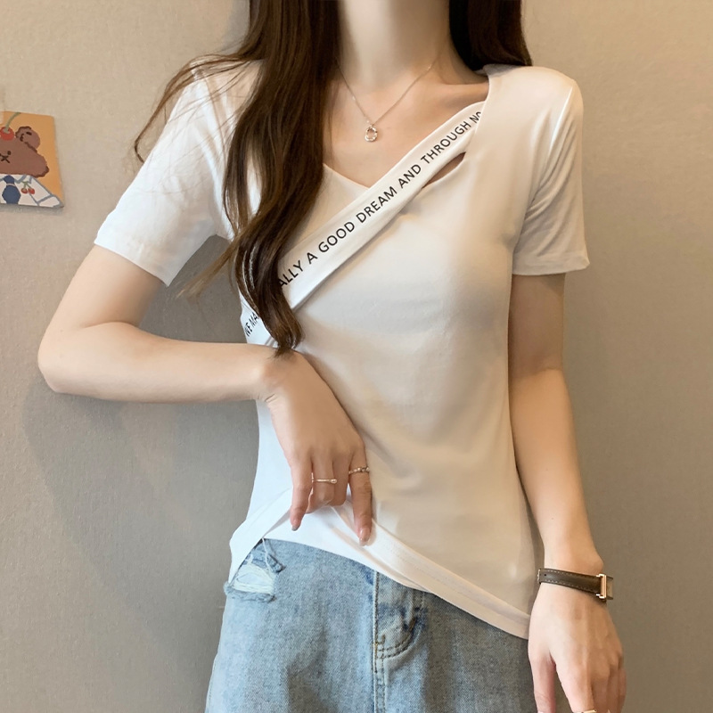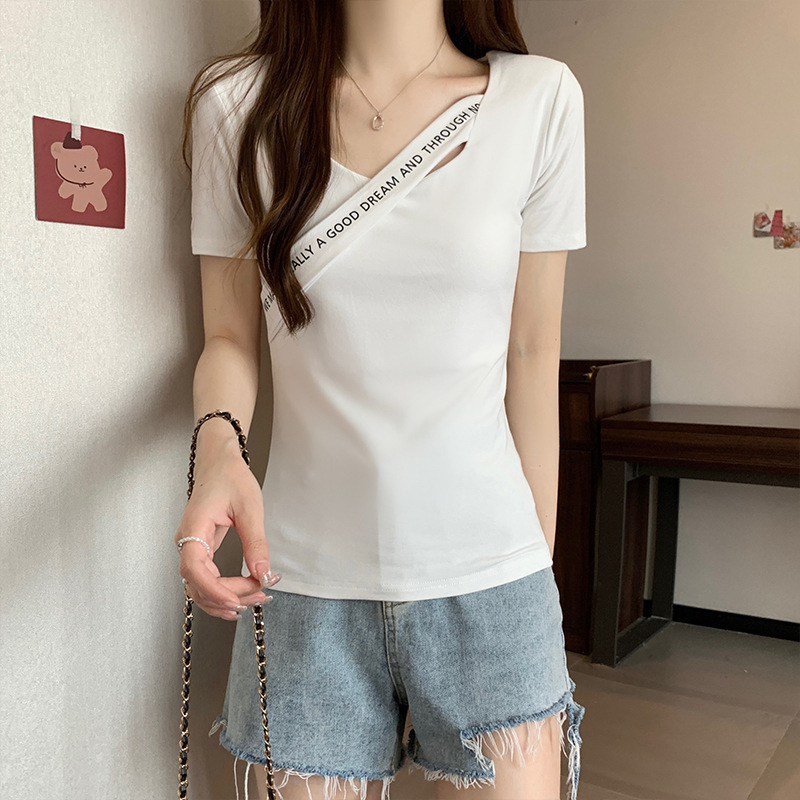 白色短袖T恤女夏季新款韩版字母印花减龄百搭显瘦短款小衫潮