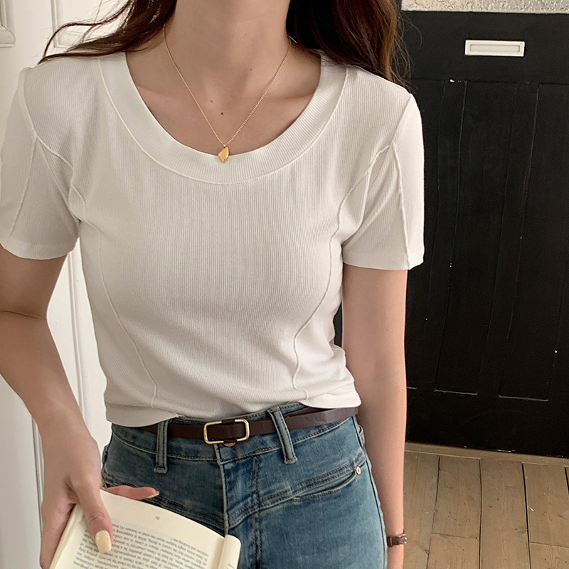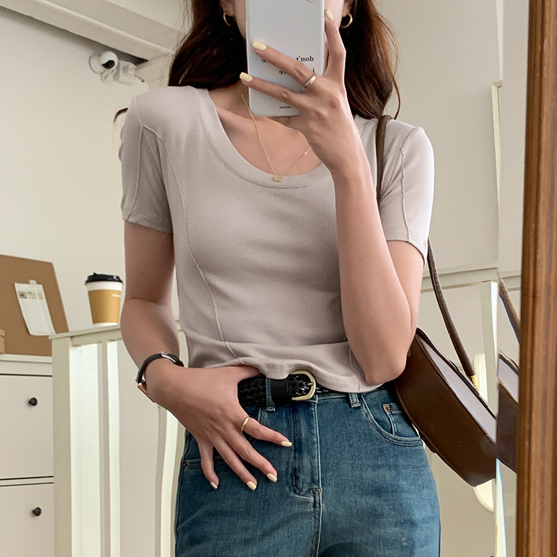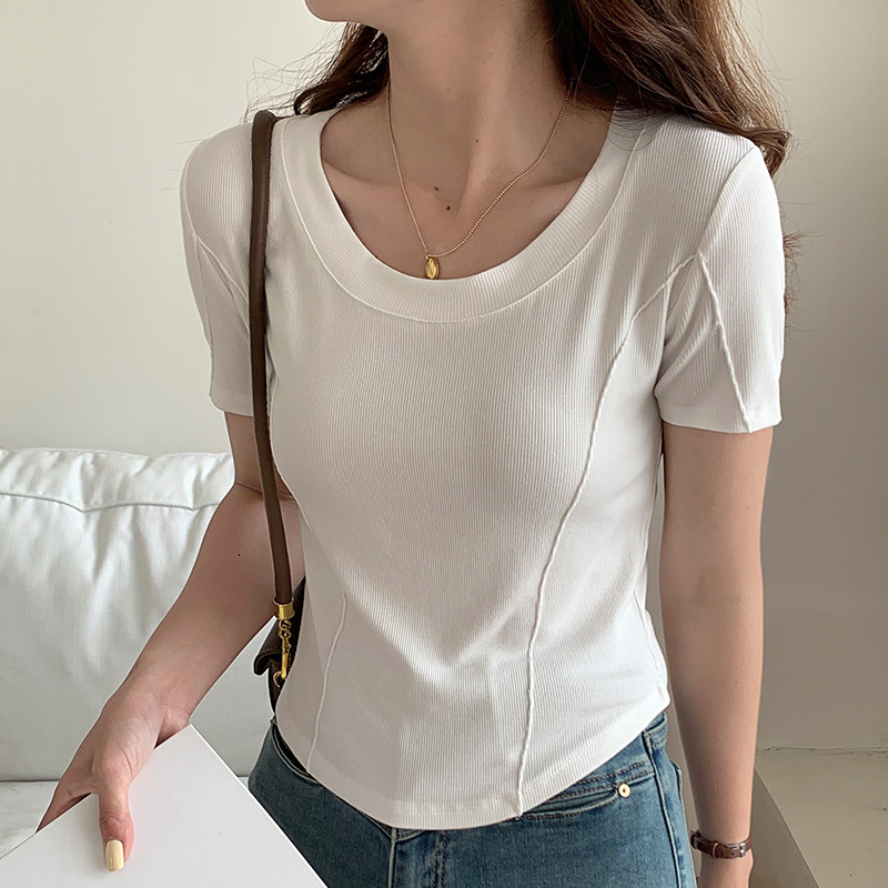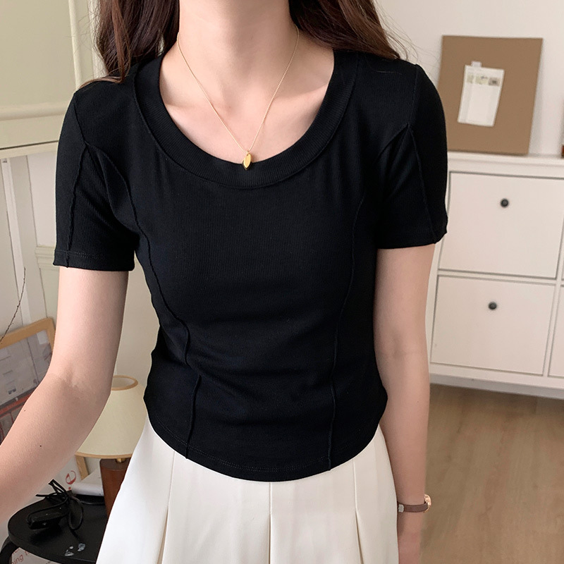 别致短袖t恤女正肩设计感夏装小众心机短款修身鱼骨上衣独特