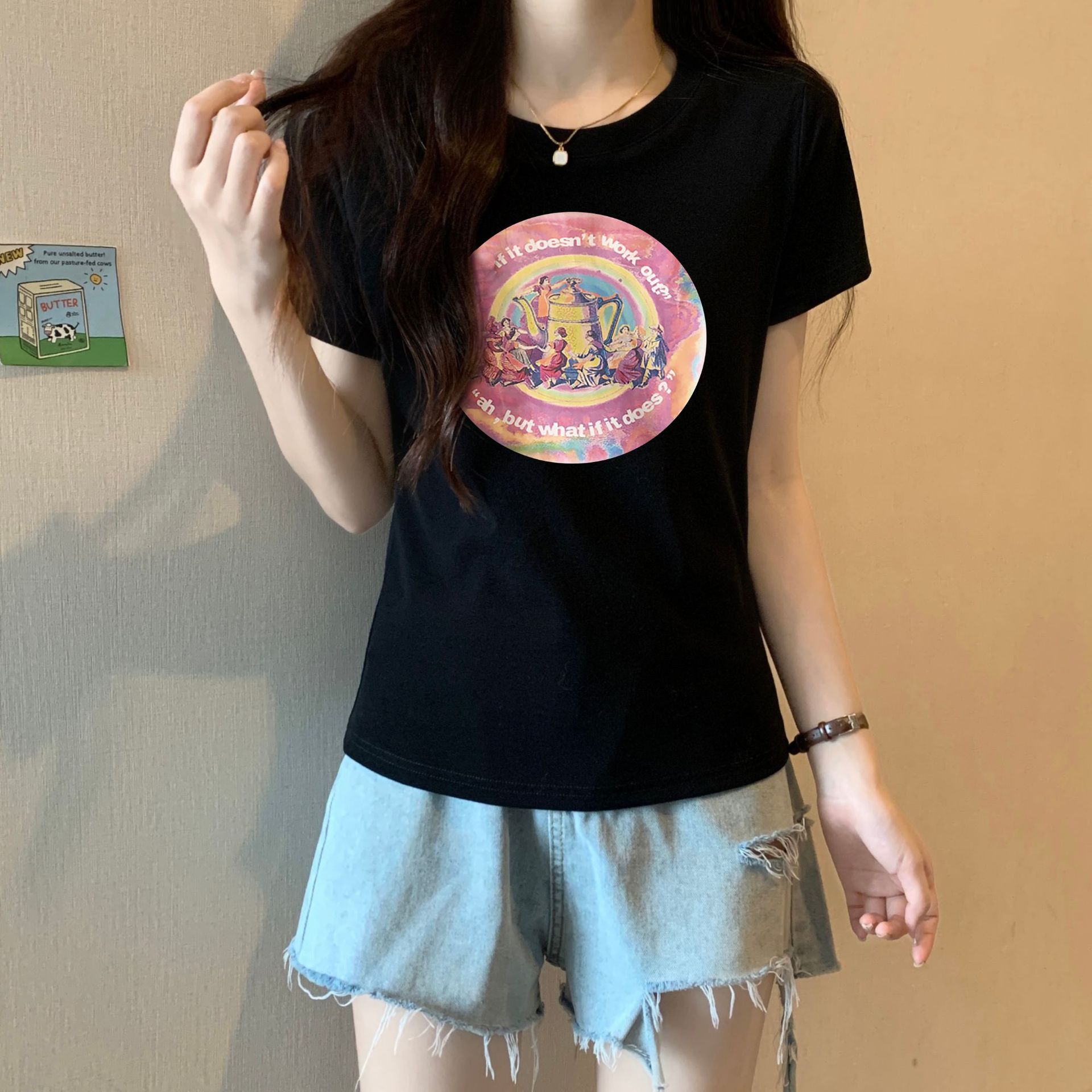 欧洲站短袖t恤女夏季年新款别致高级感修身上衣半袖