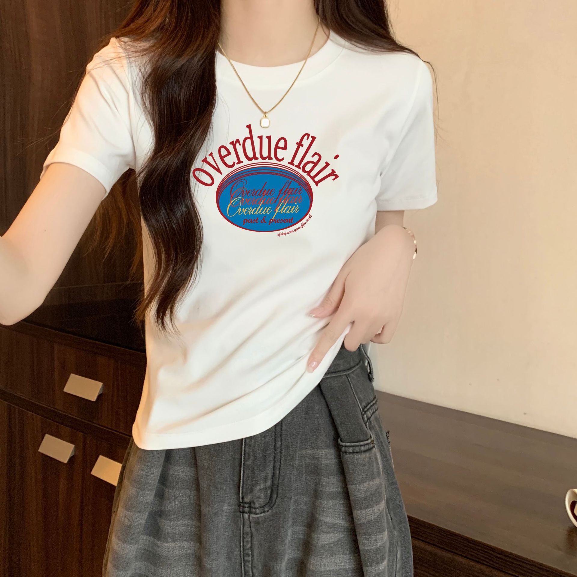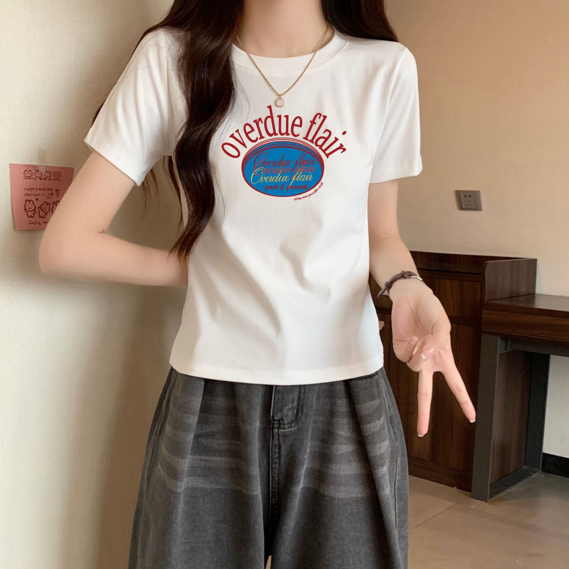 欧货短袖T恤女半袖夏装新款正肩印花休闲百搭修身上衣潮