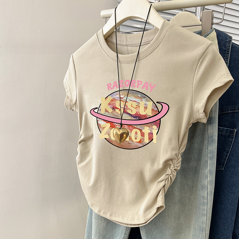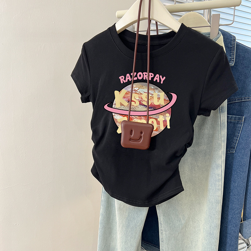 印花正肩t恤女短袖年夏季新款小飞袖短款无袖上衣女