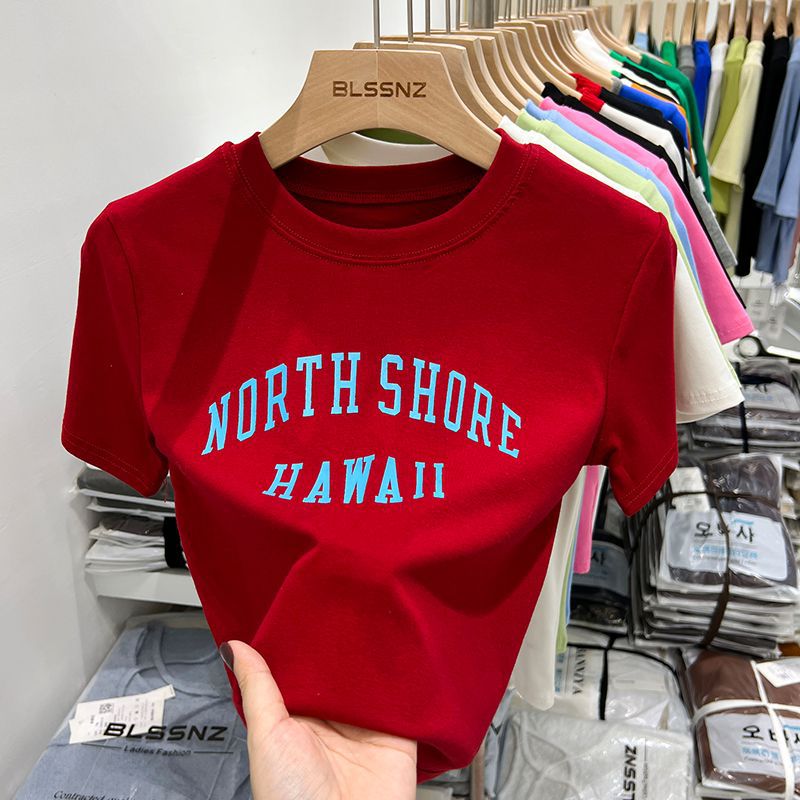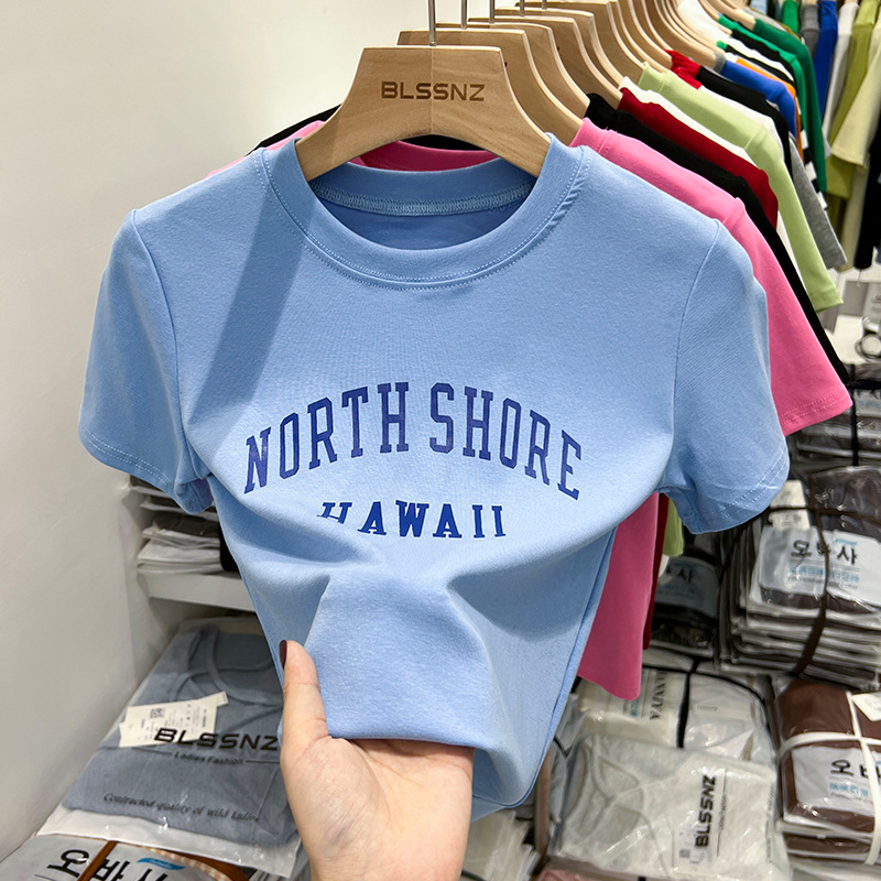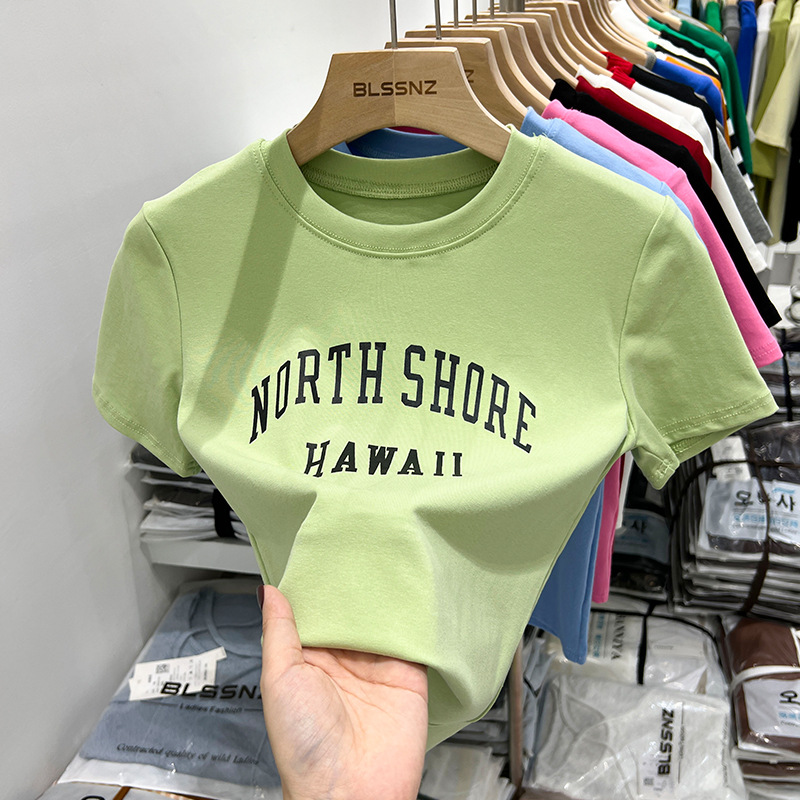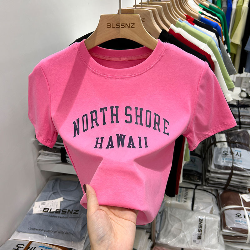 黑色t恤女短袖修身显瘦夏季新款印花字母百搭短款上衣女