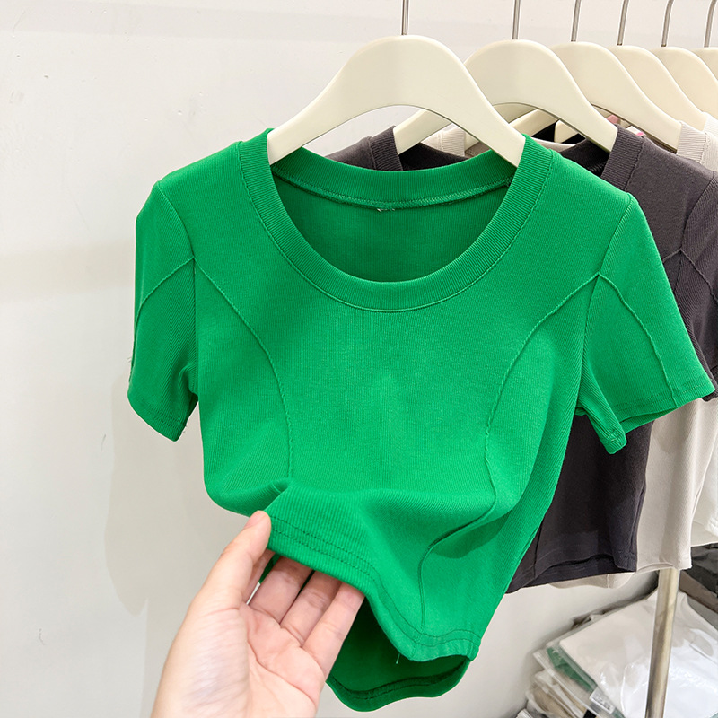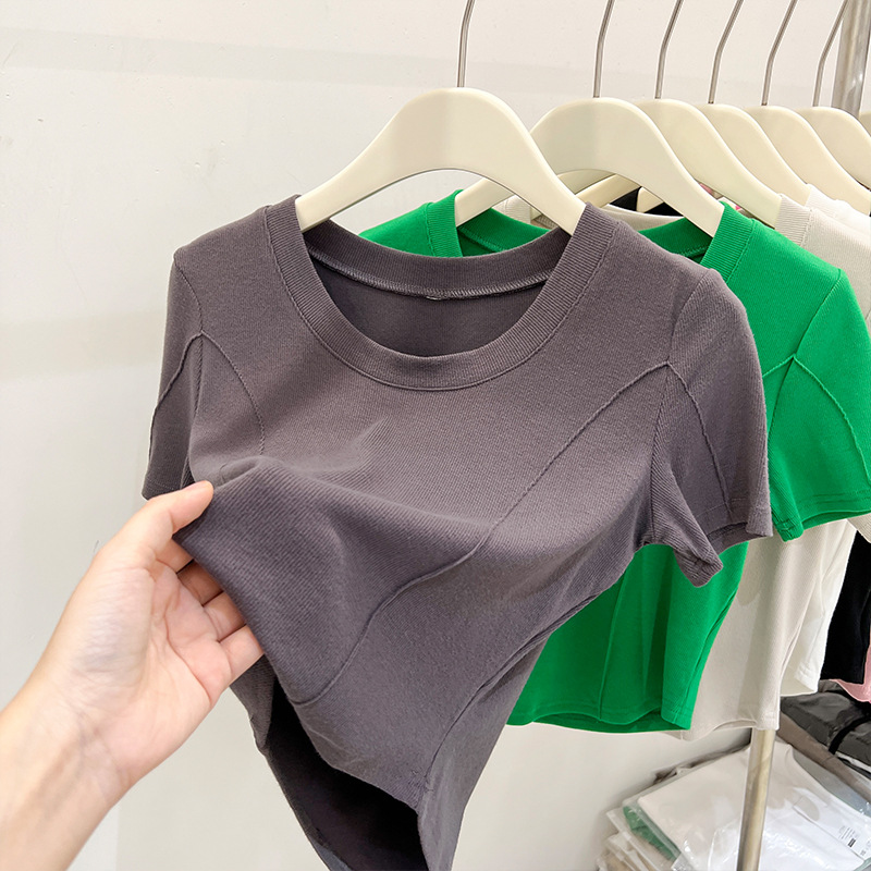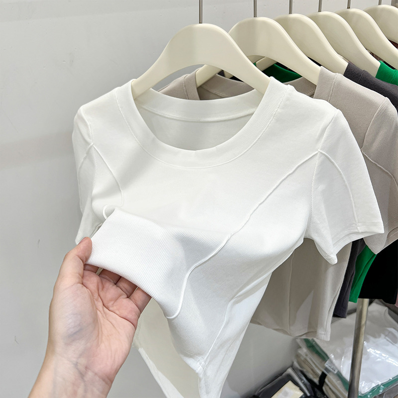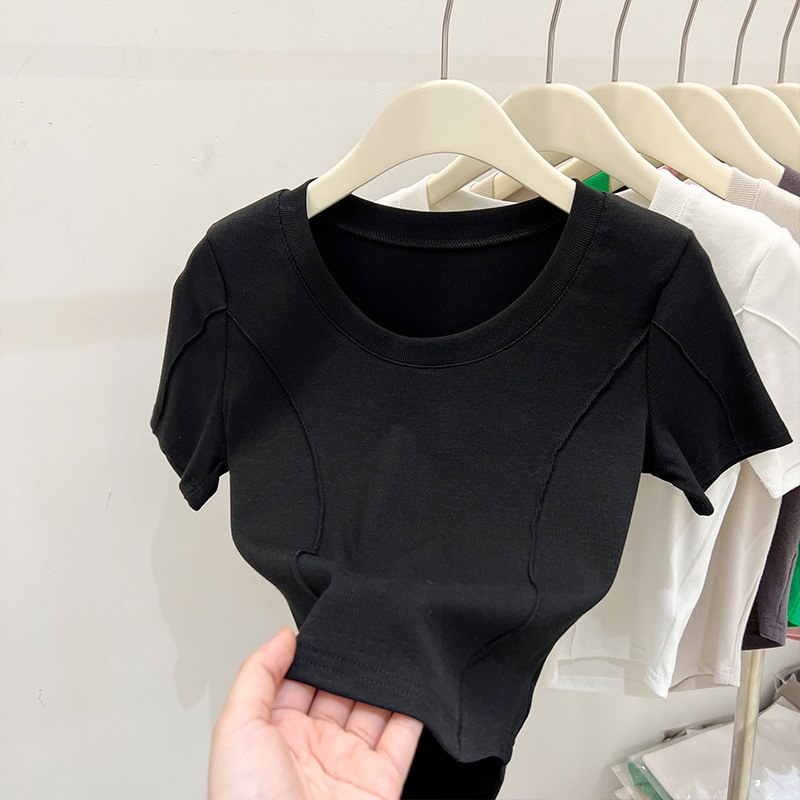 别致短袖t恤女正肩设计感夏装小众心机短款修身鱼骨上衣独特