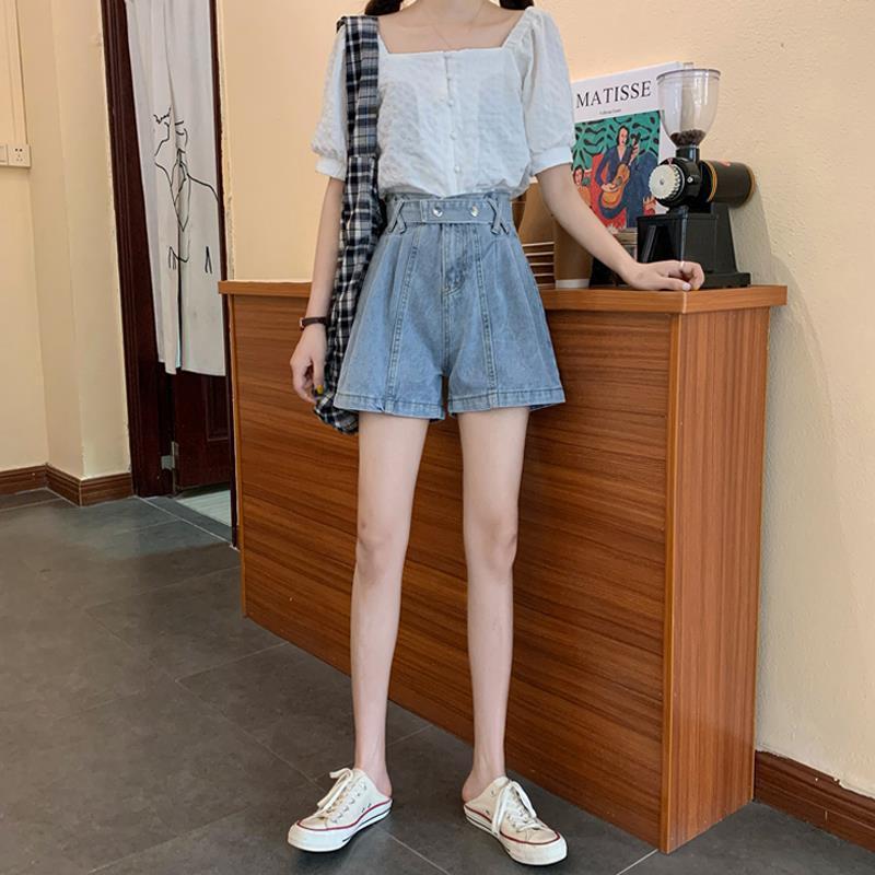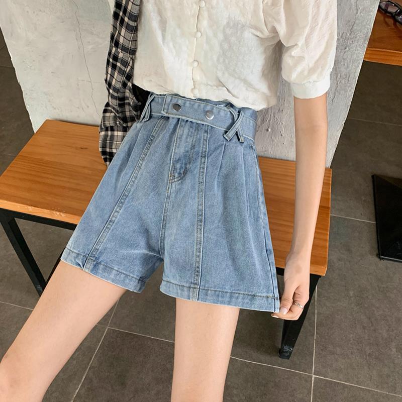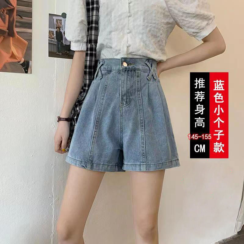 复古蓝色阔腿裤字裤子女装新款显瘦高腰直筒牛仔短裤女夏季
