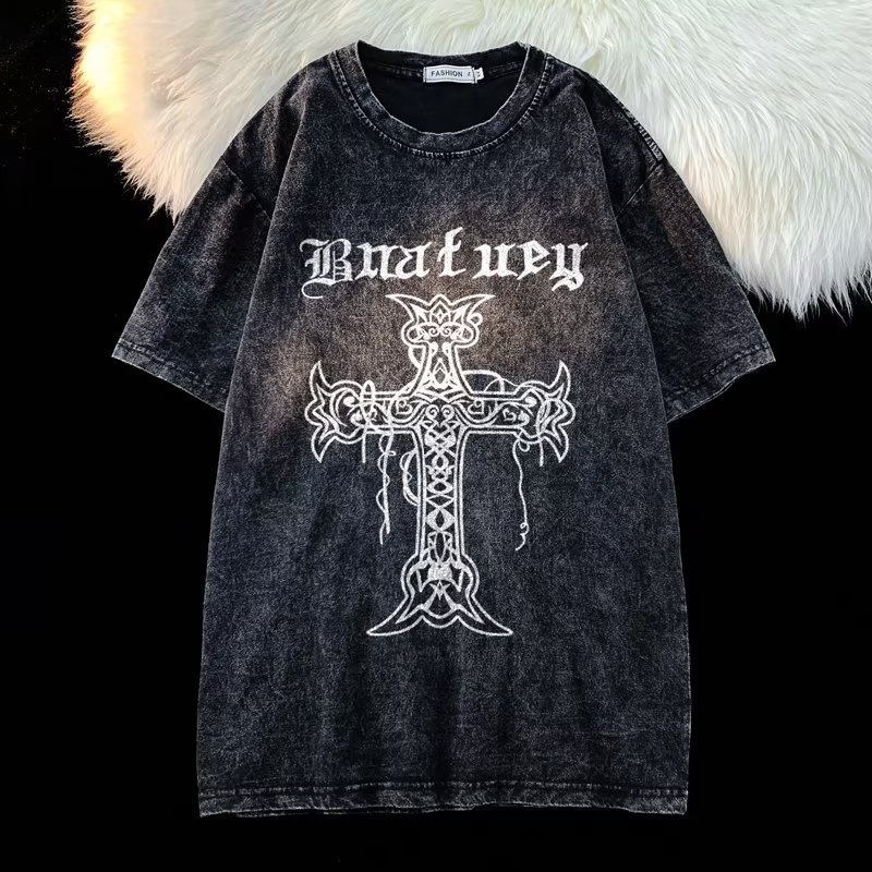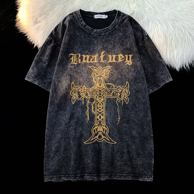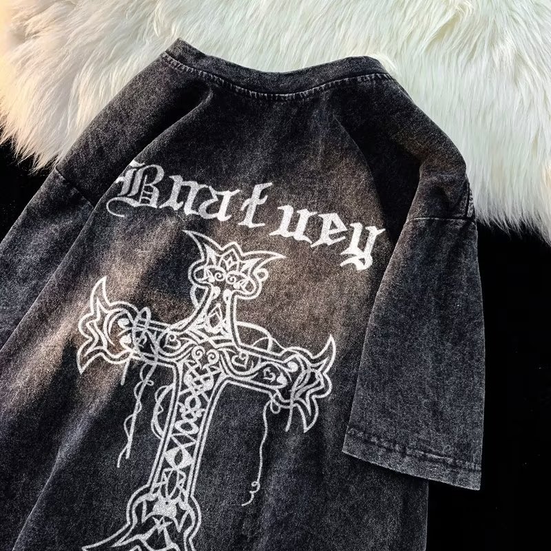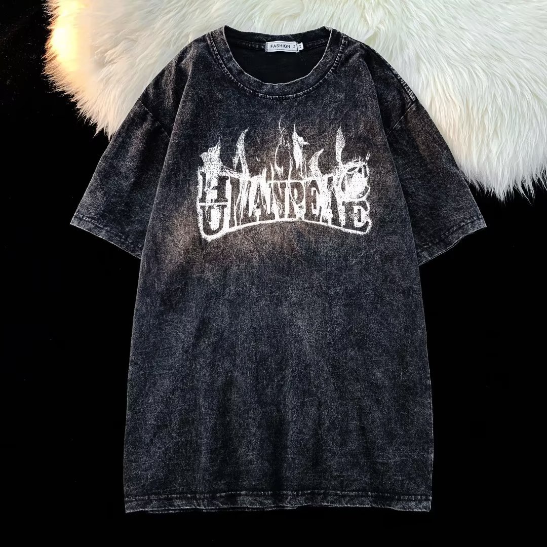 新款水洗重磅短袖t恤男款夏季潮流体恤宽松大码衣服美式复古半袖