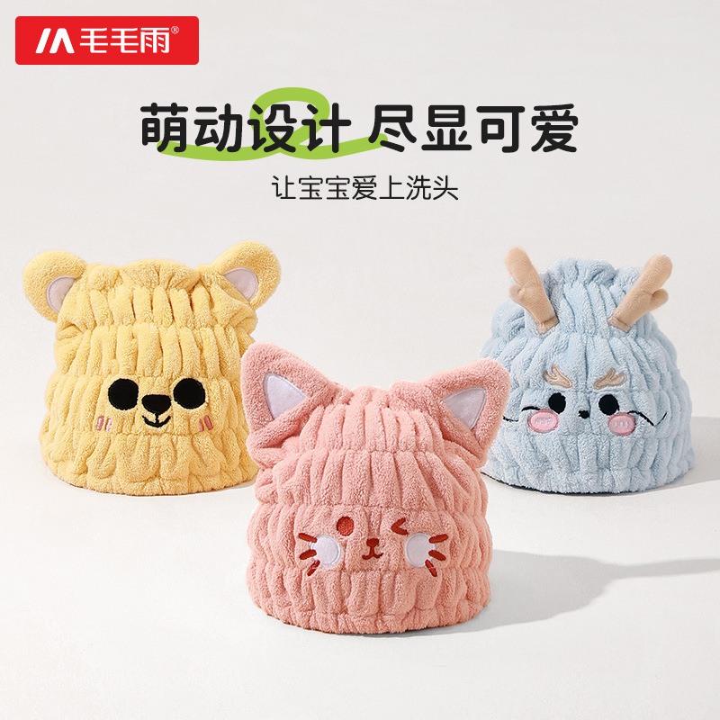 珊瑚绒儿童干发帽宝宝可爱浴帽女童类吸水不易掉毛