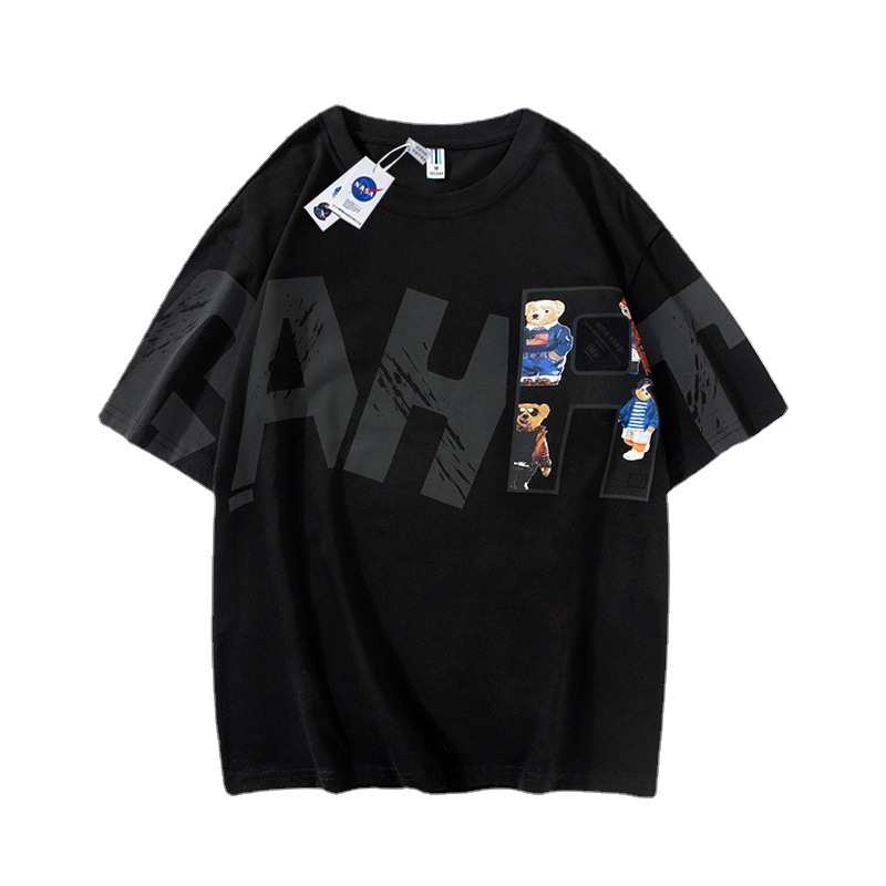 NASA联名夏季港风男士圆领短袖上衣潮流休闲宽松百搭印花青年T恤