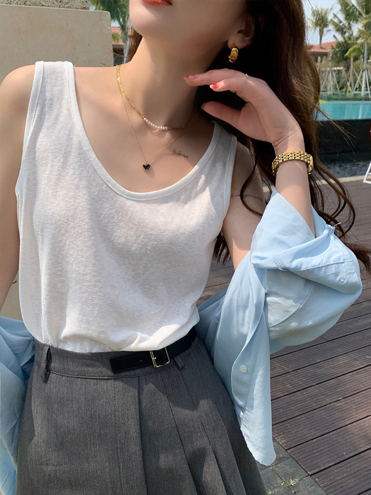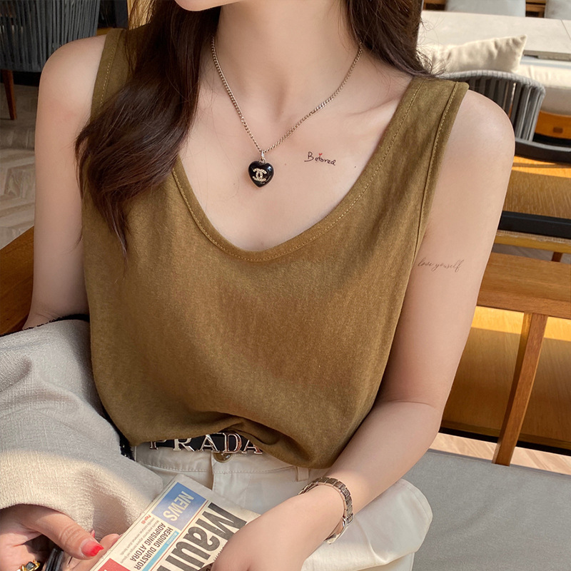 棉麻背心女内搭新款宽松打底吊带夏季外穿上衣宽肩带无袖t恤