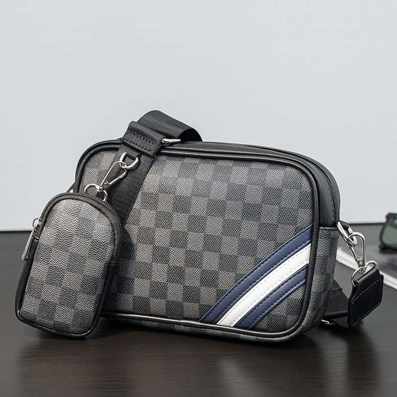 新款时尚男士小方包 经典百搭格子单肩包个性潮流子母包斜挎包