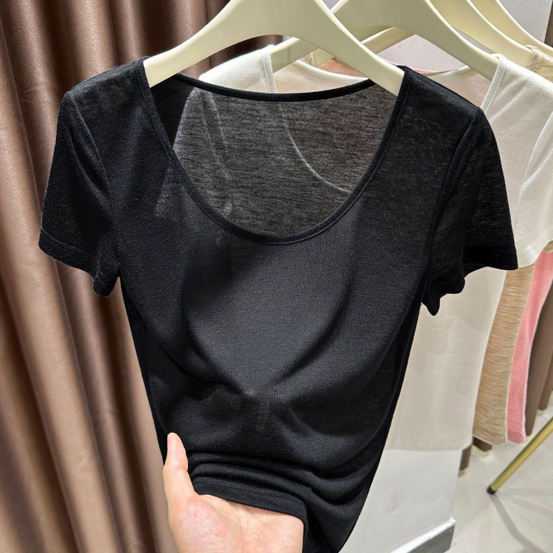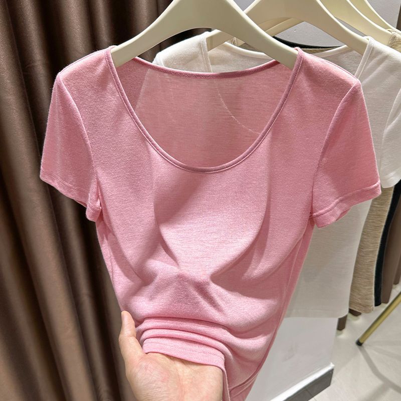 莫代尔百搭白色低领正肩短袖T恤女夏季皮肤衣上衣薄款内搭打底衫