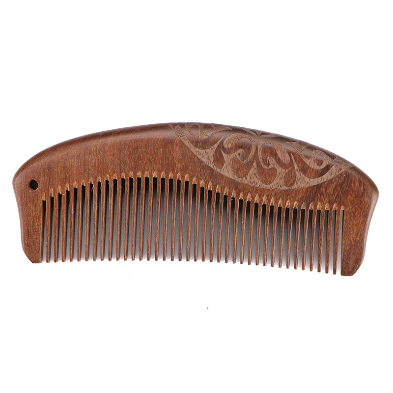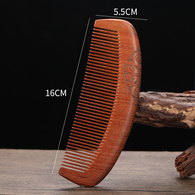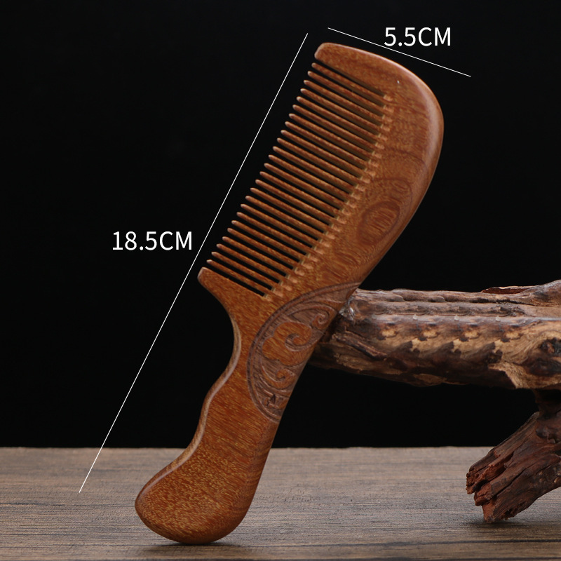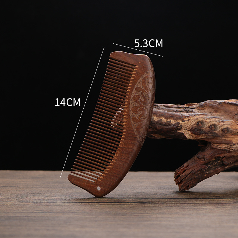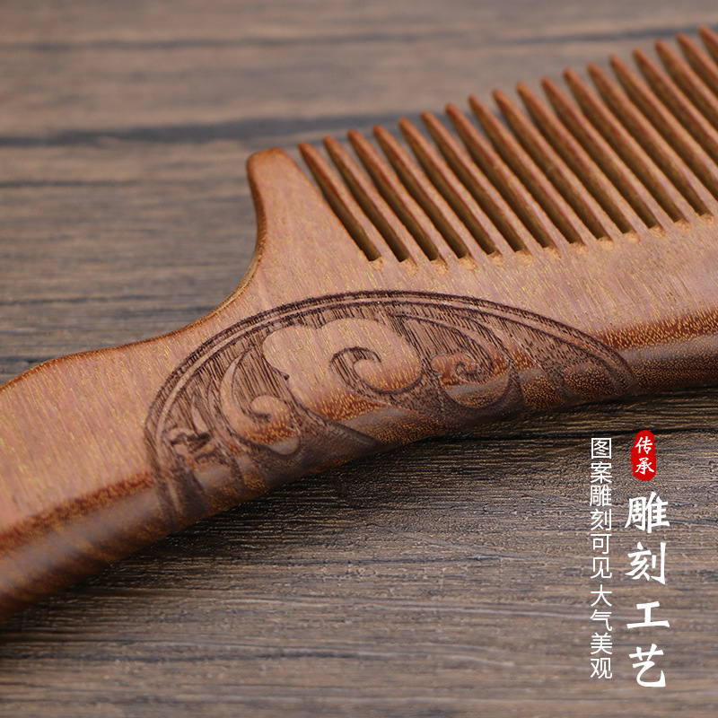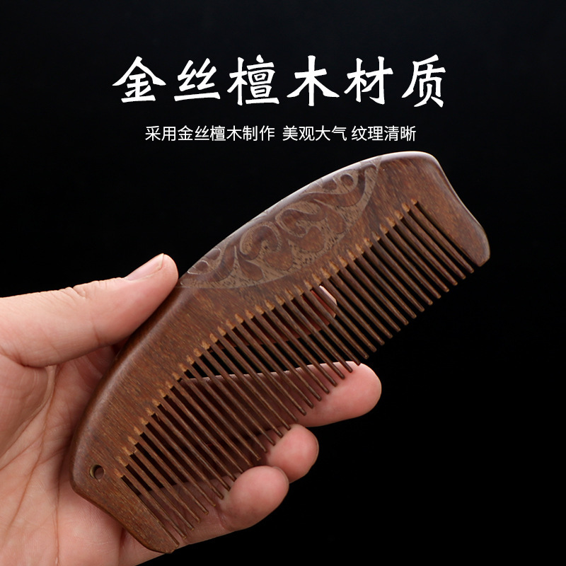 金丝檀木整木梳子厚实雕花柄梳月梳批发按摩梳头