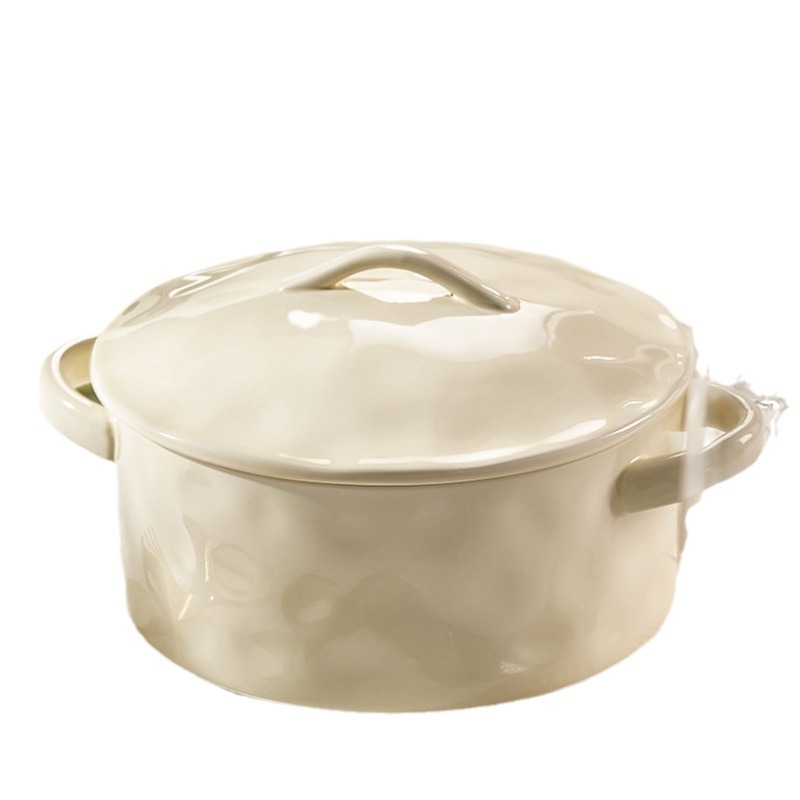 奶油风双耳汤碗家用新款陶瓷大汤盆带盖